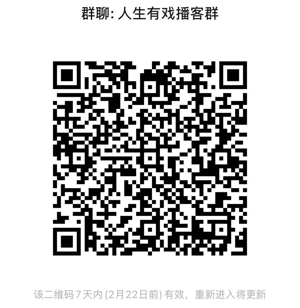 本期中奖小伙伴会通过小宇宙站内回复,中奖的小伙伴们我们会在我们的粉丝群公布,所以也请大家一起加入【人生有戏】微信群吧~二维码如果过期,也可以添加小助手的Meissen9的微信加你入群
