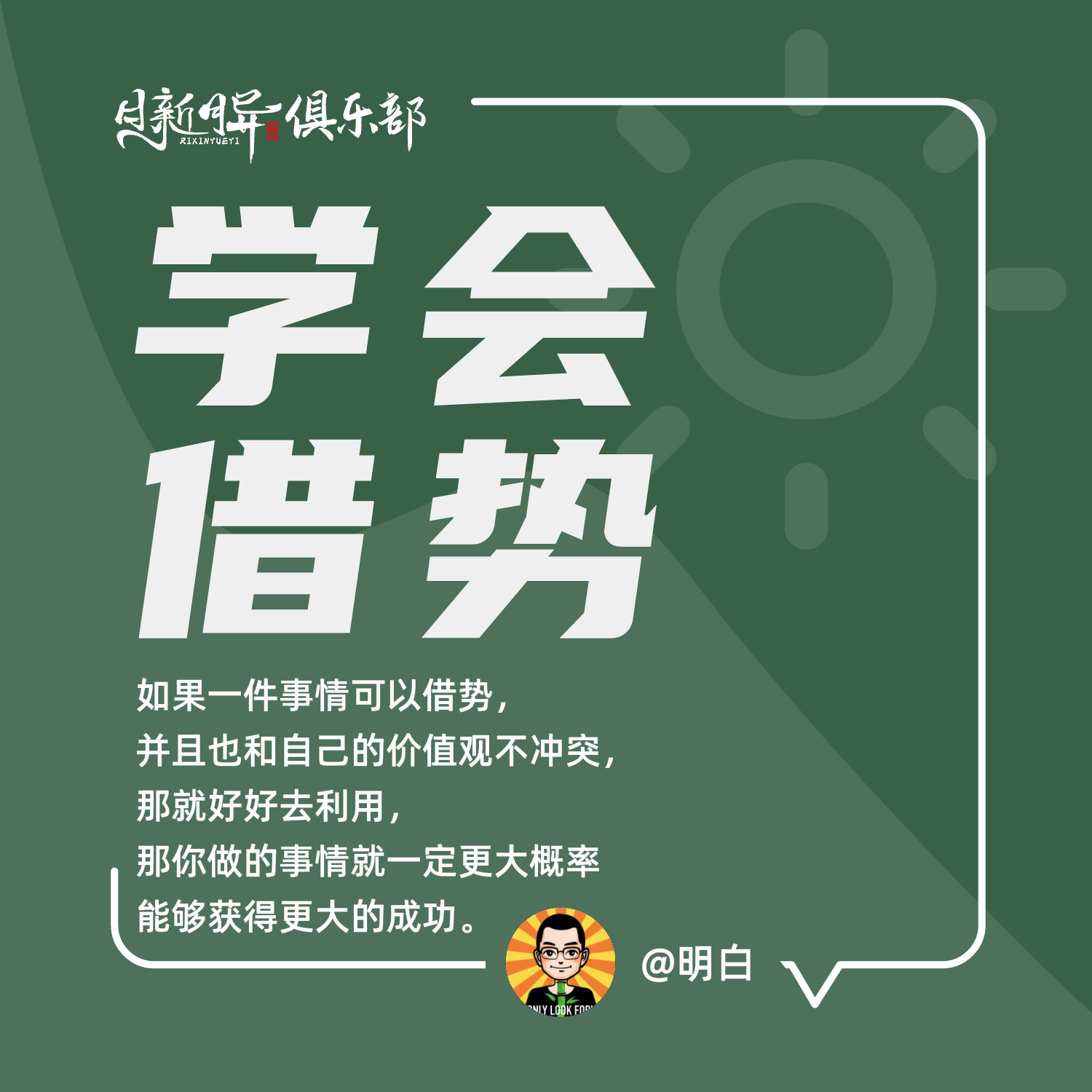 借势是一件挺重要的事情,如果一件事情可以借势,并且也和自己的价值观不冲突,那就好好去利用,那你做的事情就一定更大概率能够获得更大的成功。