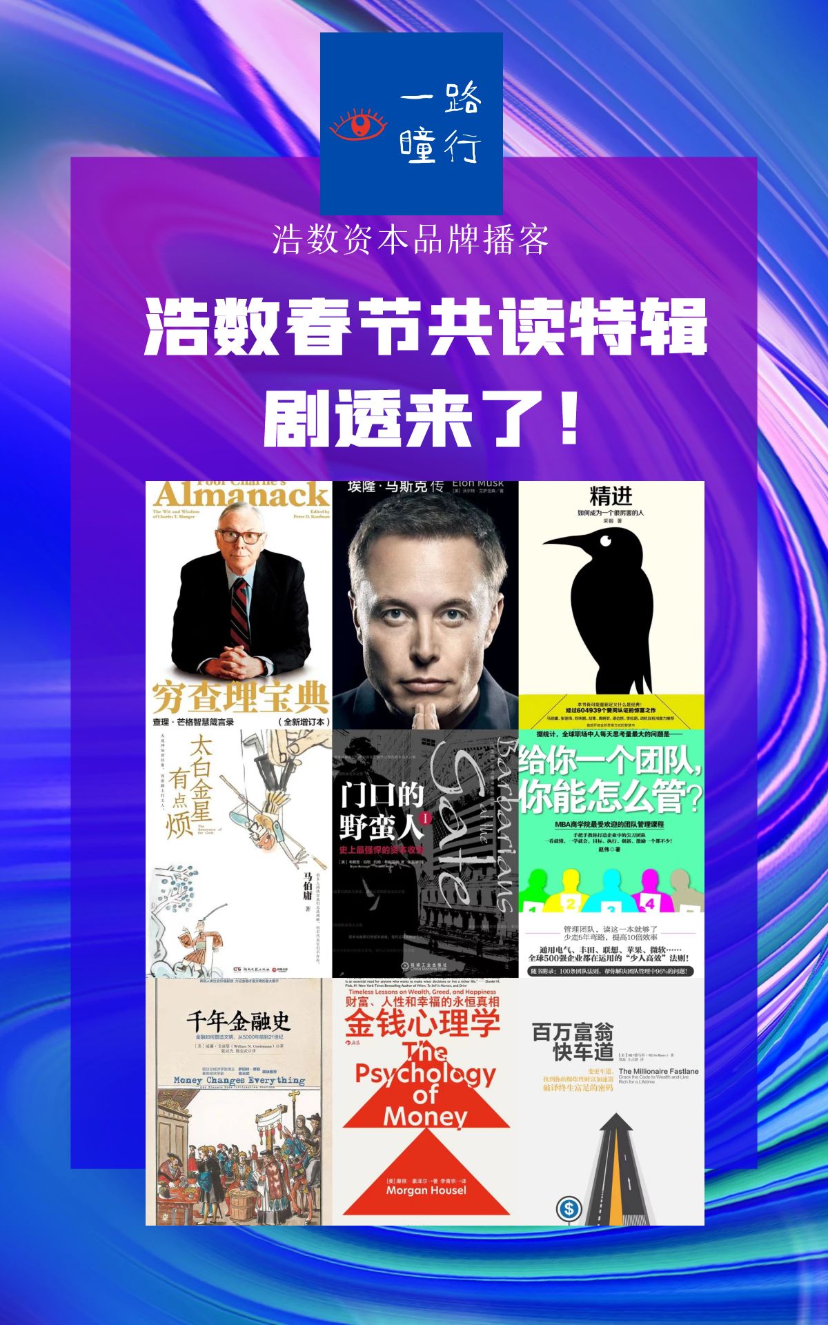 还有一周就要春节了,今年的春节放假8天,再加上很多企业都会在大年夜放假,所以掐指一算,今年春节可以放9天哎,那么浩数资本一路瞳行节目也为大家准备了春节特辑系列——浩叔共读,每天给大家分享一本好书。