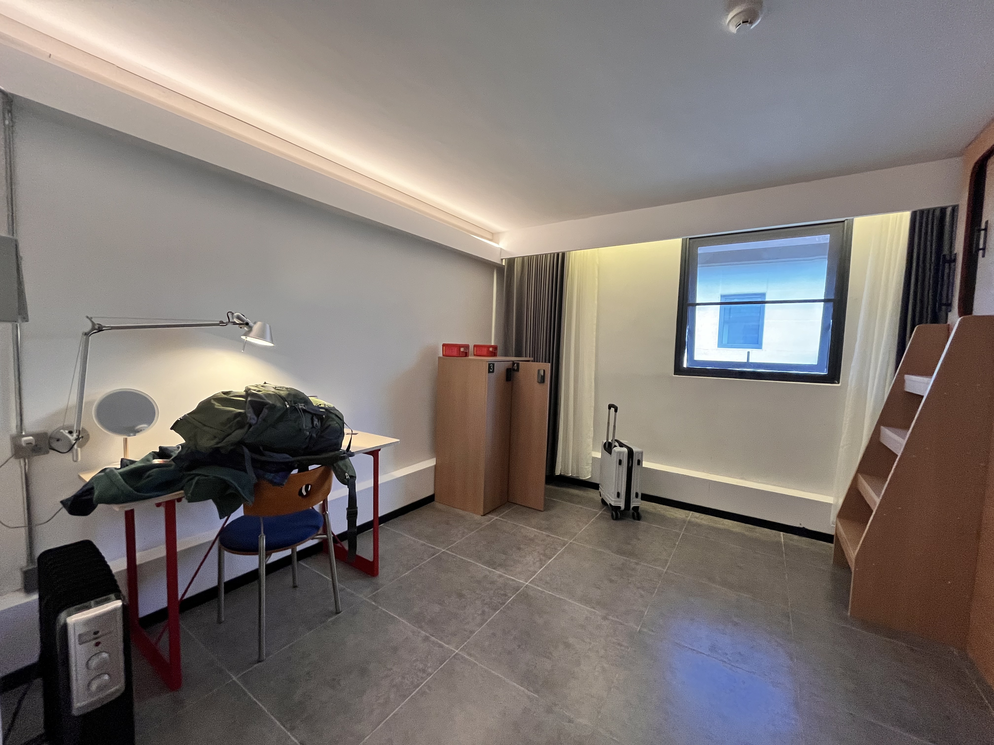 这次选了一家青旅,上次住青旅还是20年前在青岛,那次体验不佳:床品不干净、浴室门坏、位置不便。这次选择的青旅,公共区域是清水混凝土风格,宽敞明亮。4人间60元左右/晚,男女分楼。