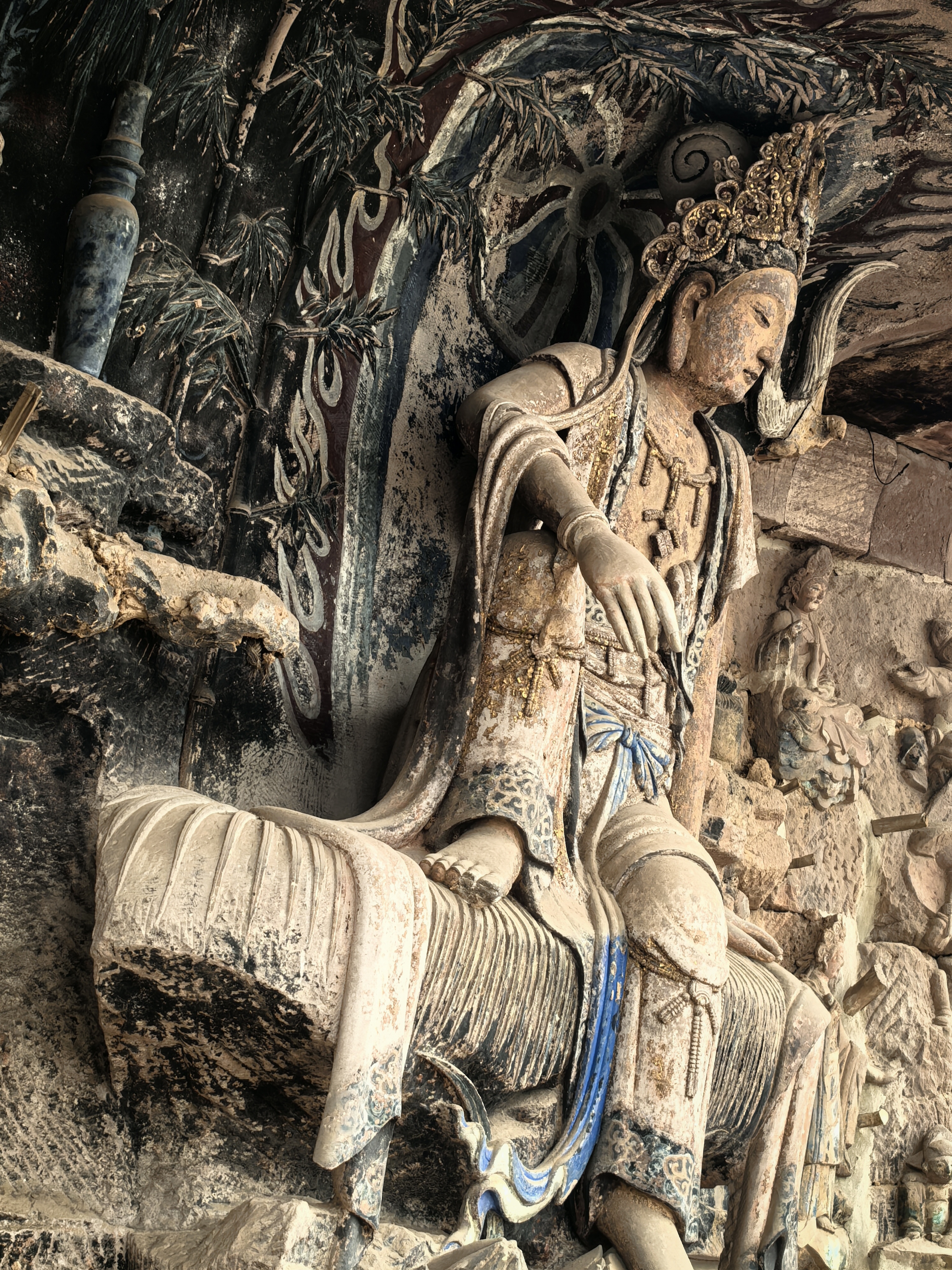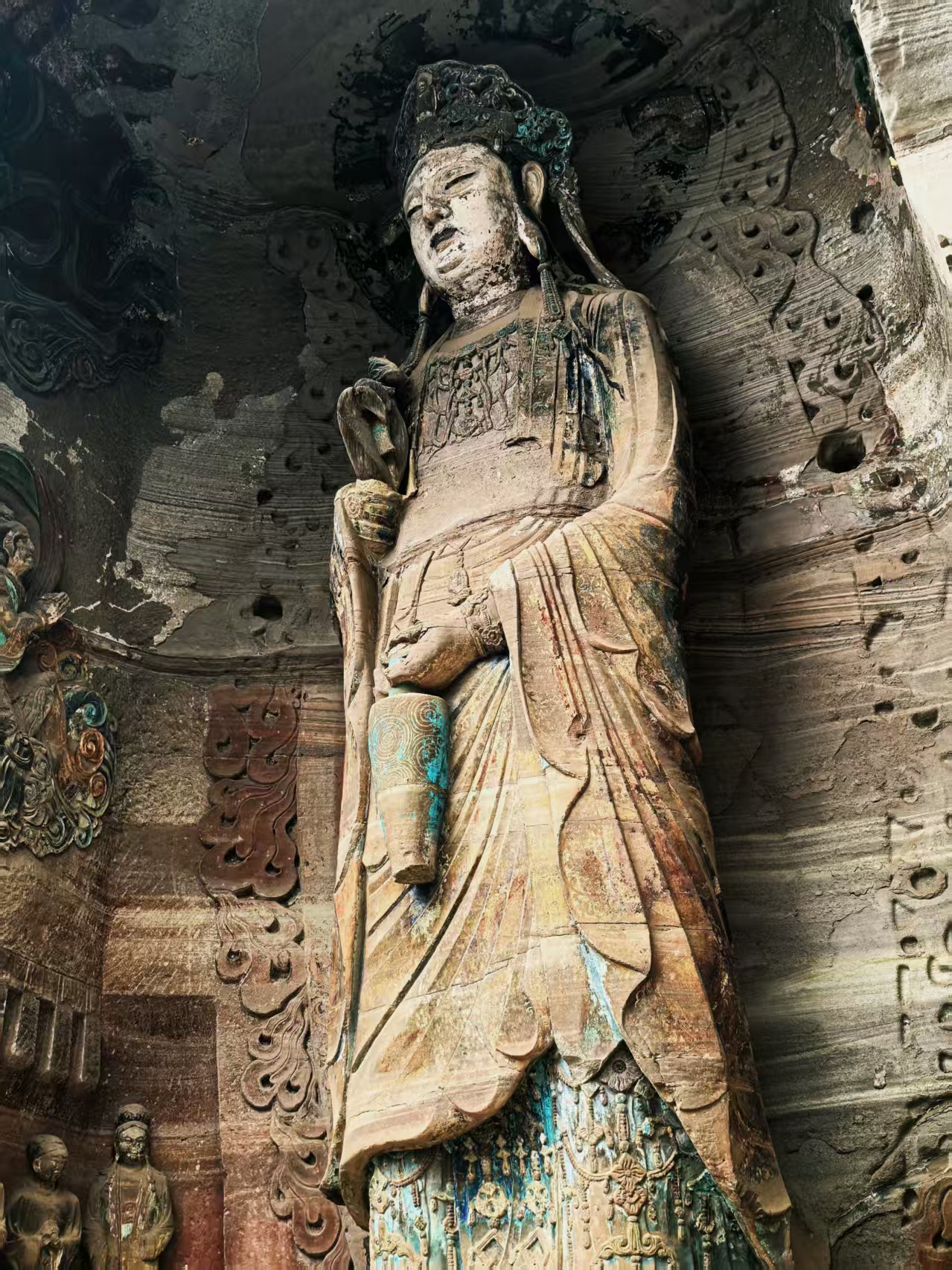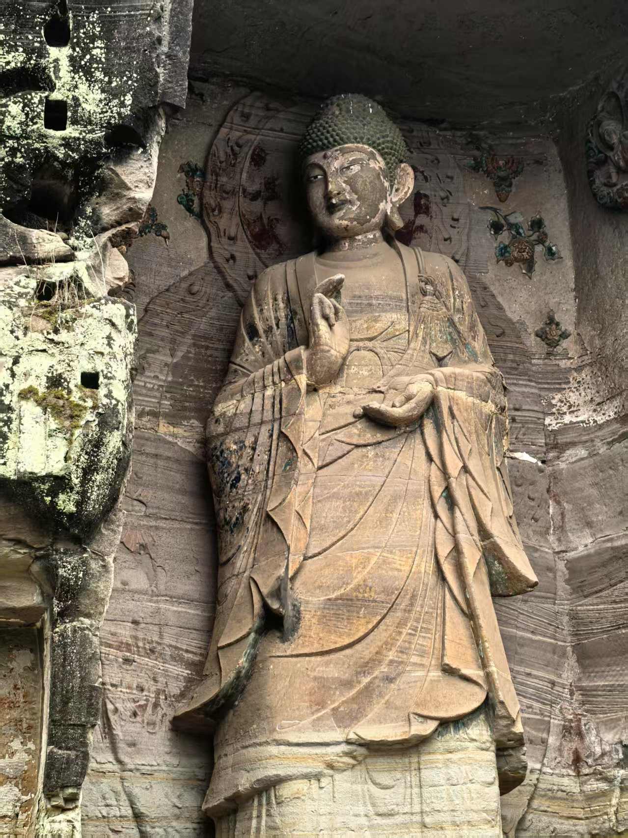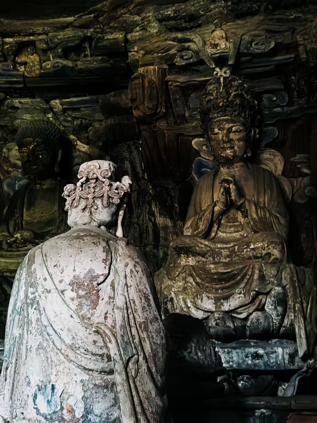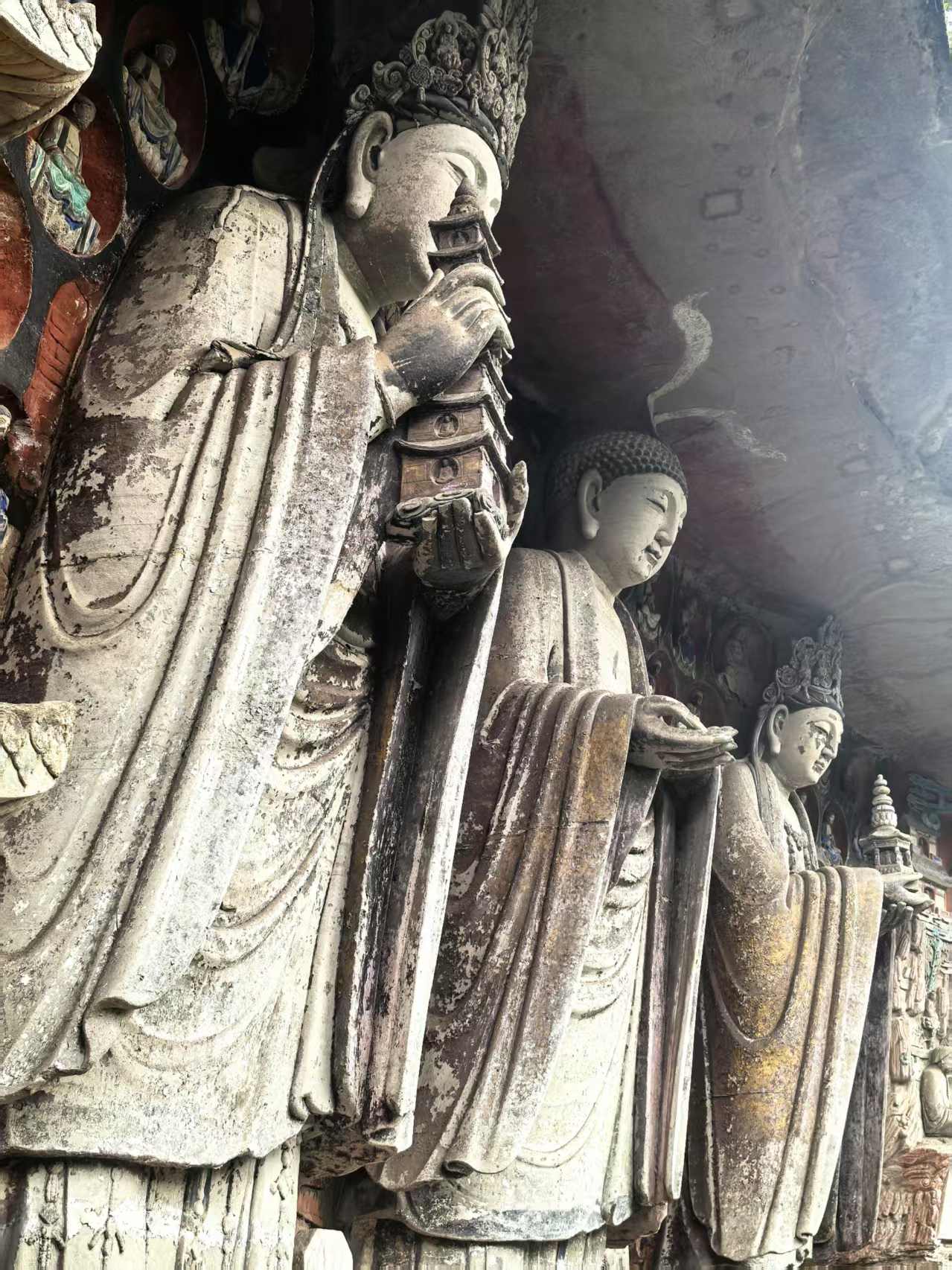 而所有的石窟保护都是历史级难题,比如大足石窟里的千手观音。这尊金光闪闪的观音像历时十年修复后重新开放,在黑神话悟空里熠熠生辉,但其“修旧如新”的修复方式却引起了巨大的争议:文物保护应如何在“恢复原貌”和“保留时间痕迹”之间找到平衡,值得我们每一位访古爱好者深思。