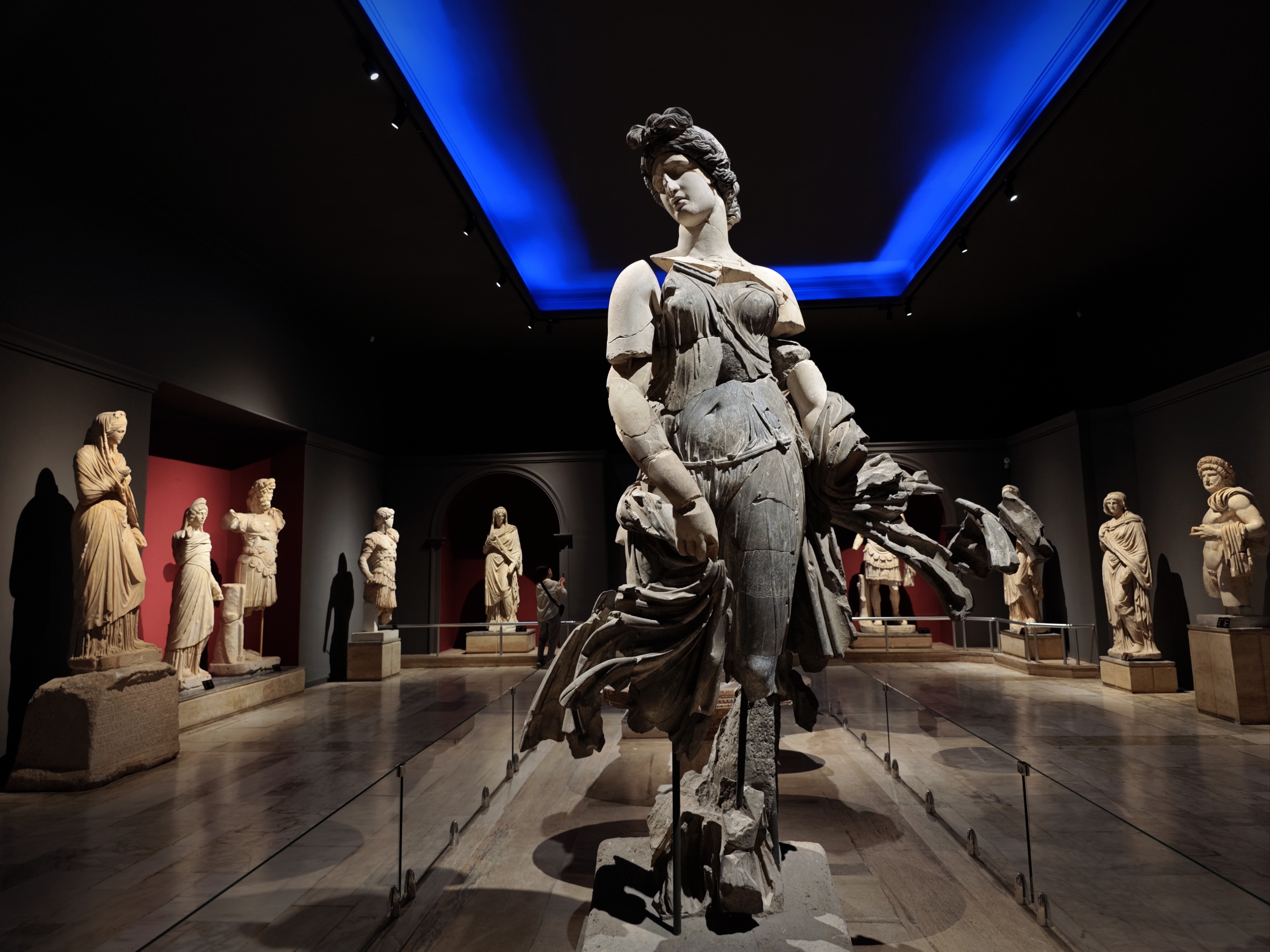 走进安塔利亚博物馆,得以近距离理解这座“地中海文化混血儿”:极其罕见的黑白双色大理石拼接而成的“舞女”雕像,身兼多届市长、阿尔忒弥斯女祭司、帝国崇拜高级女祭司及“众神之母终身女祭司”的罗马女性精英Plancia Magna,肢体残缺却展现永恒之美的美惠三女神雕像……这些展品勾勒出古罗马女性的非凡影响力。