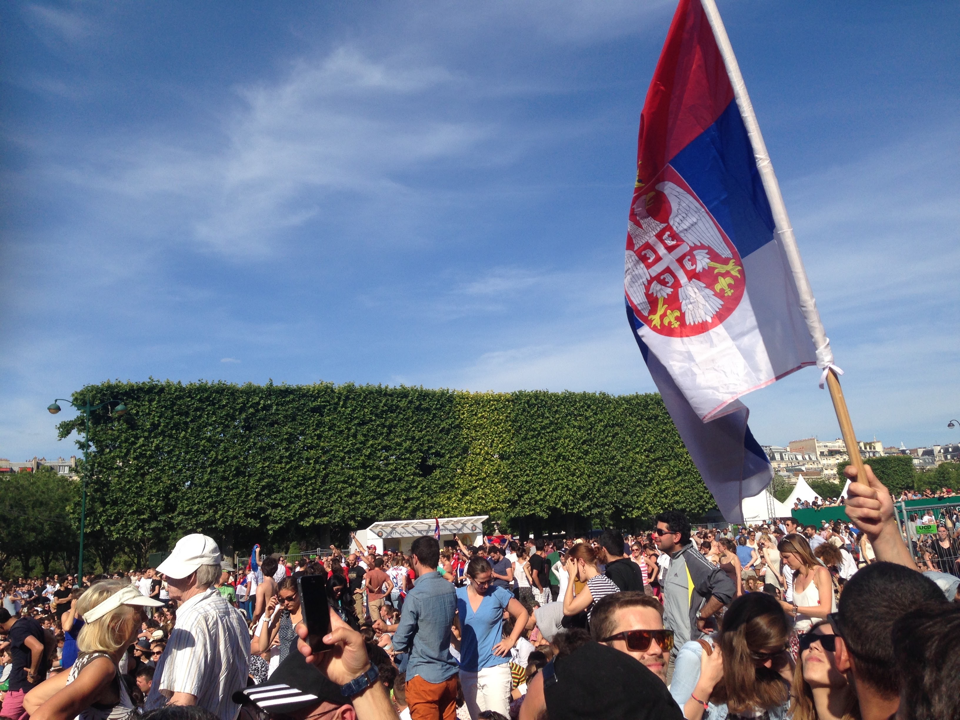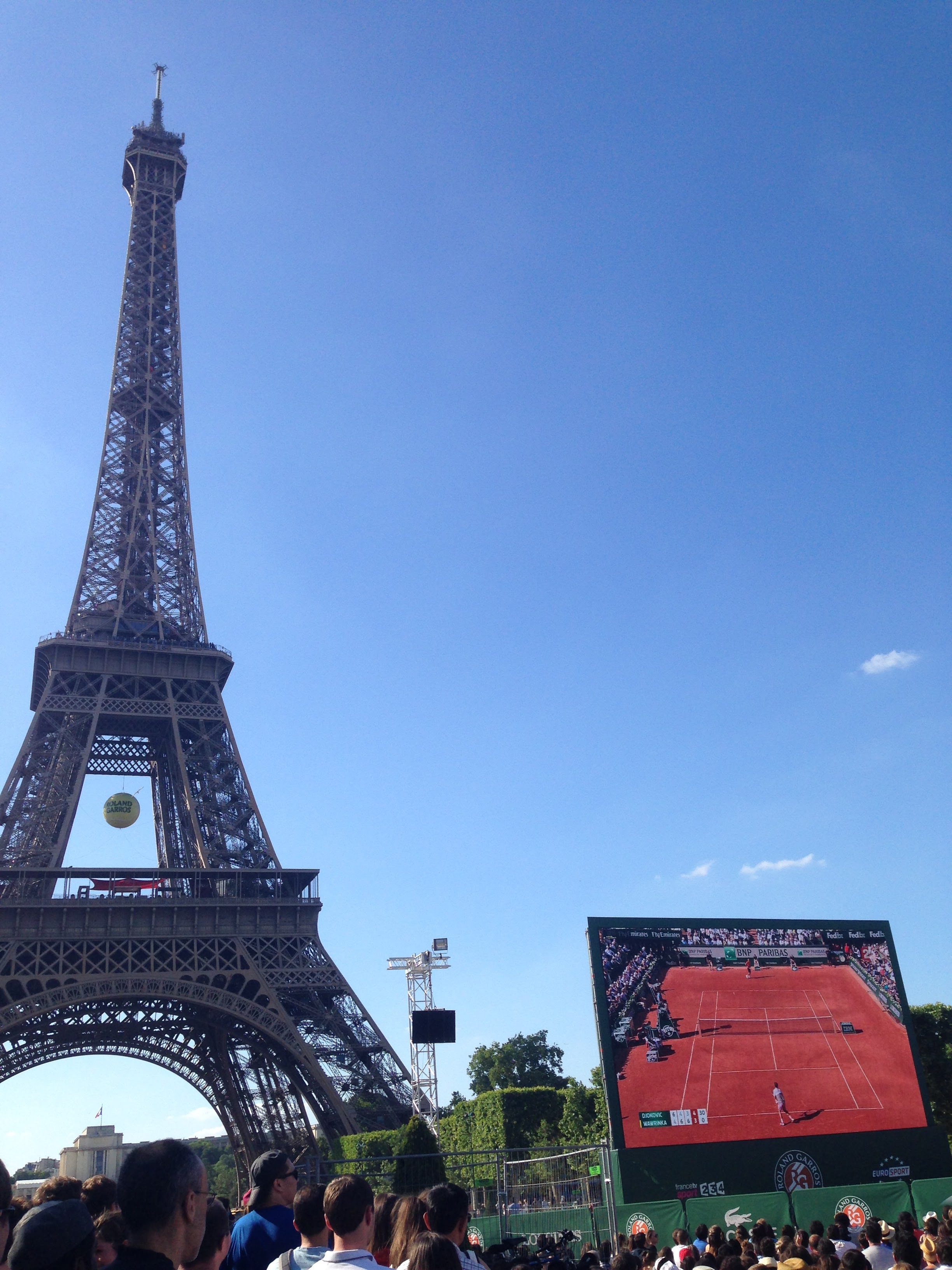 15年在埃菲尔铁塔前观看塞尔维亚网球选手德约科维奇与瑞士选手瓦林卡的法网决赛