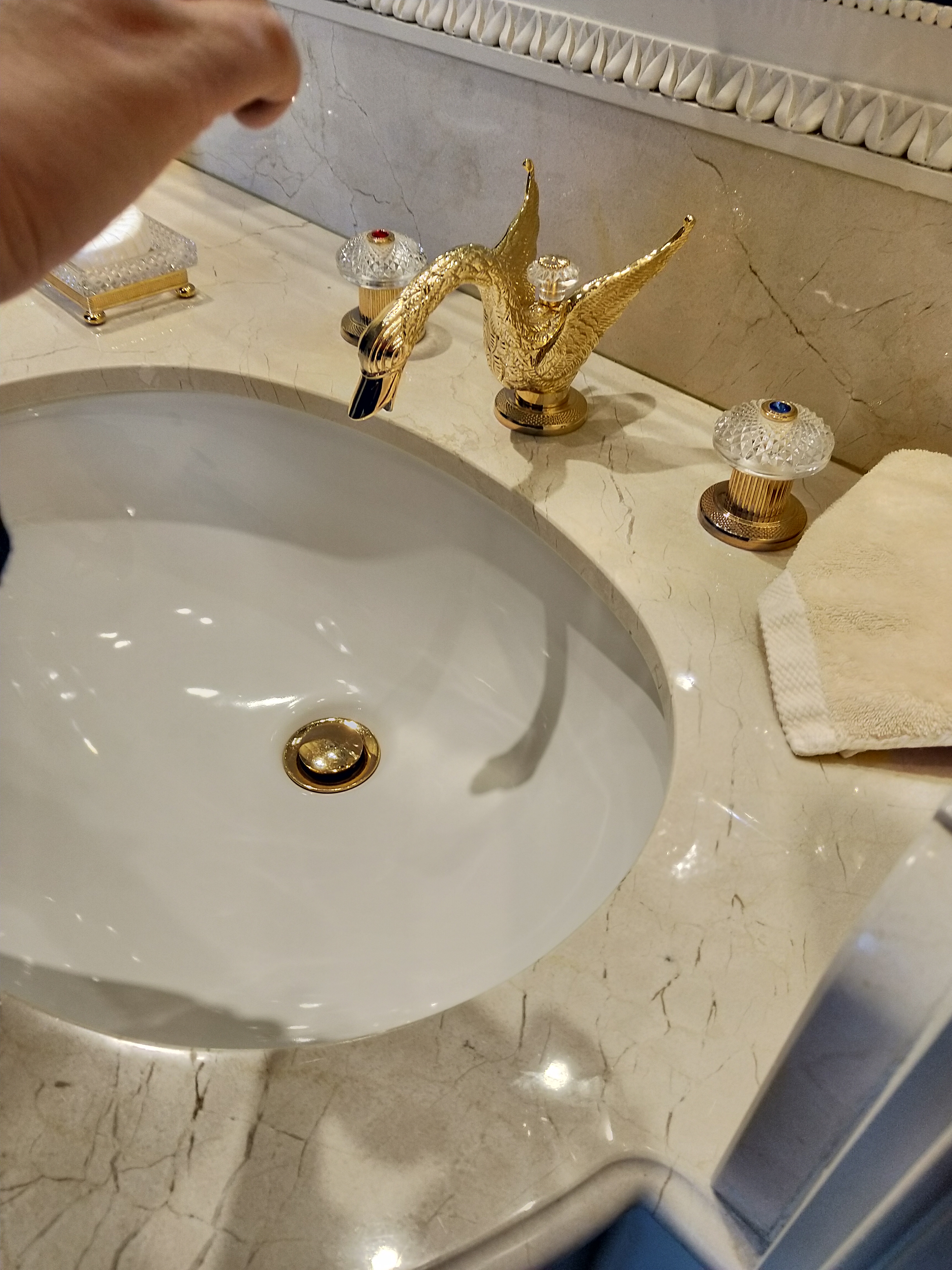 丽兹卡尔顿酒店里的镀金(我猜的,也有可能是纯金?)天鹅形状水龙头,看我颤抖的手