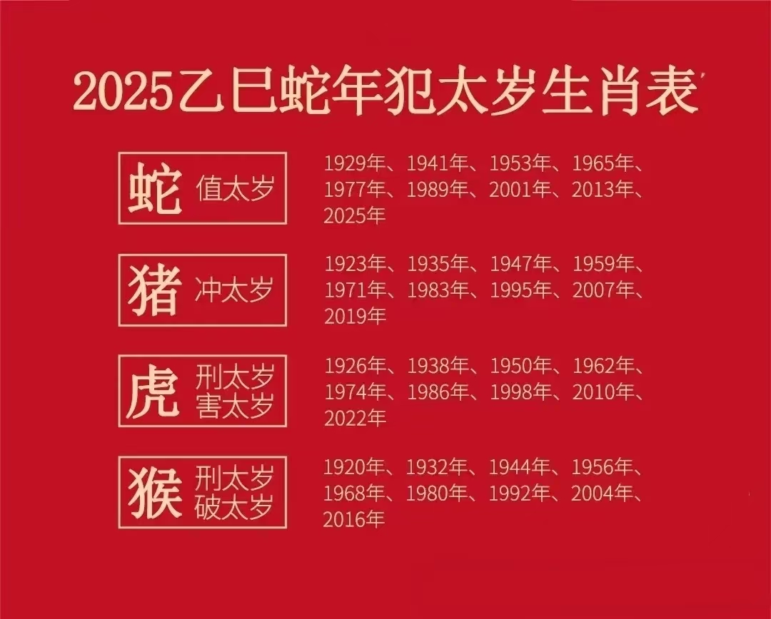 一般人在犯太岁之年都非常重视当年的运程运势,以及了解化解的方法,现在我们一起来看看2025年有哪些生肖犯太岁。