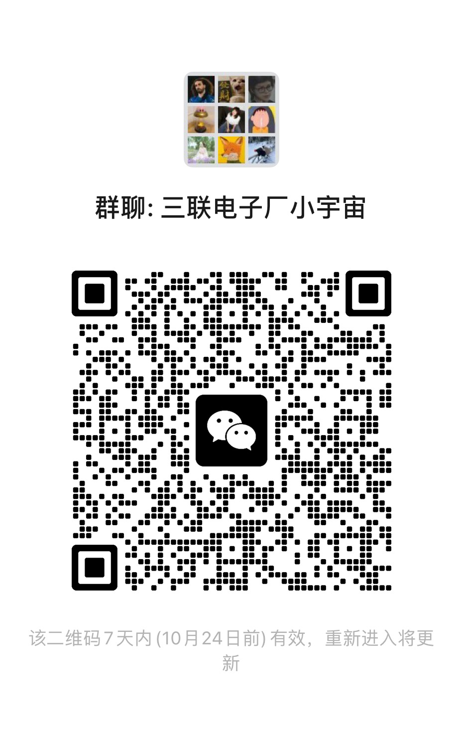 亲爱的听众朋友们,如果你们对于这个话题也有一些个人思考,欢迎分享到评论区和加入播客群!加群方式除了可以通过扫描群二维码,还可以通过添加小助手微信:cyberlife2048,回复“播客”,让小助手邀请进群哦!如果喜欢这期节目,也欢迎大家关注同名公号“三联电子厂Pro”,一起来聊聊国庆旅行这事儿~