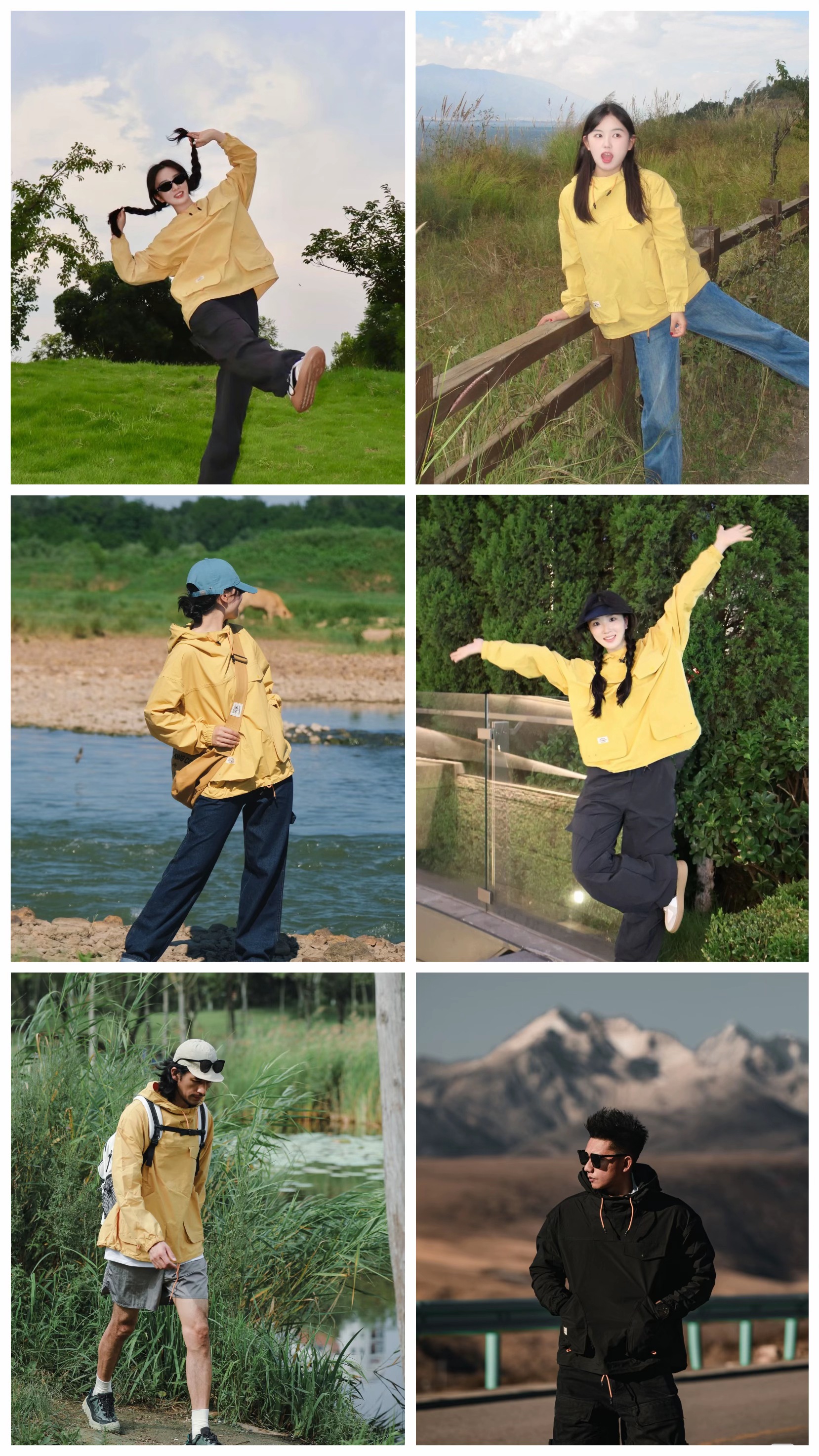 - 姜黄、黑色两个色可选的【男女同款】,黄色穿上超级有活力,拍照嘎嘎出片