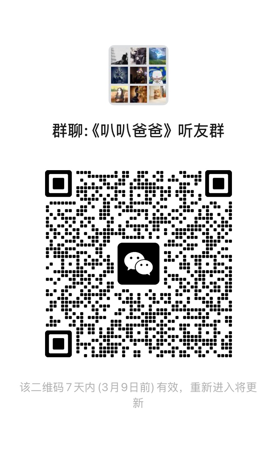 扫描下图二维码,加入《叭叭爸爸》的微信群,一起缓解焦虑吧!