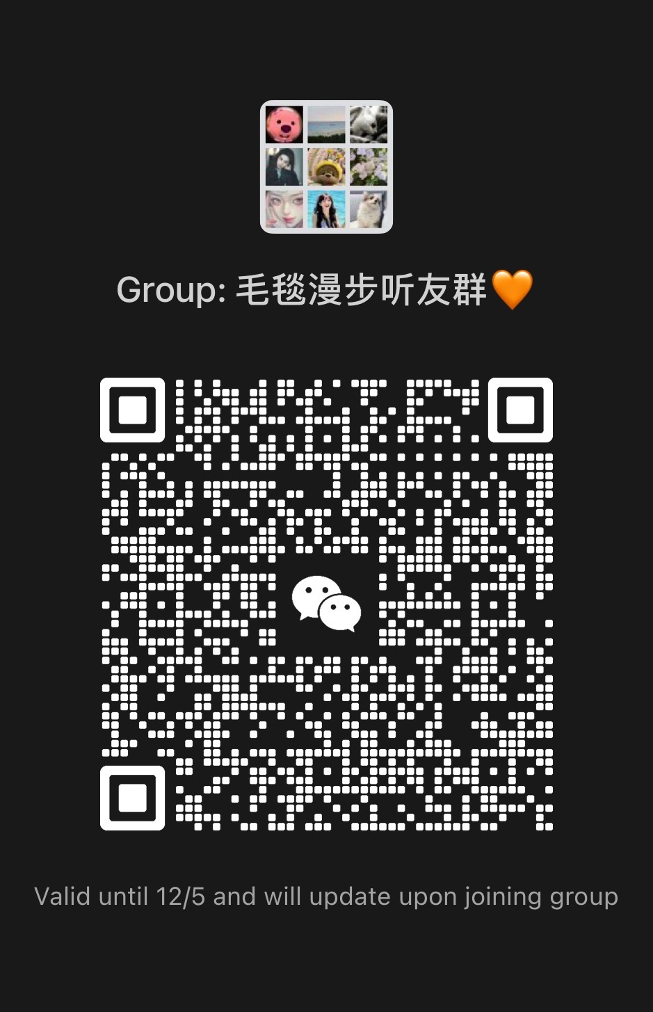 我们已经创立微信听友群啦!大家可以扫码加入群聊,我们一起散步一起聊天!