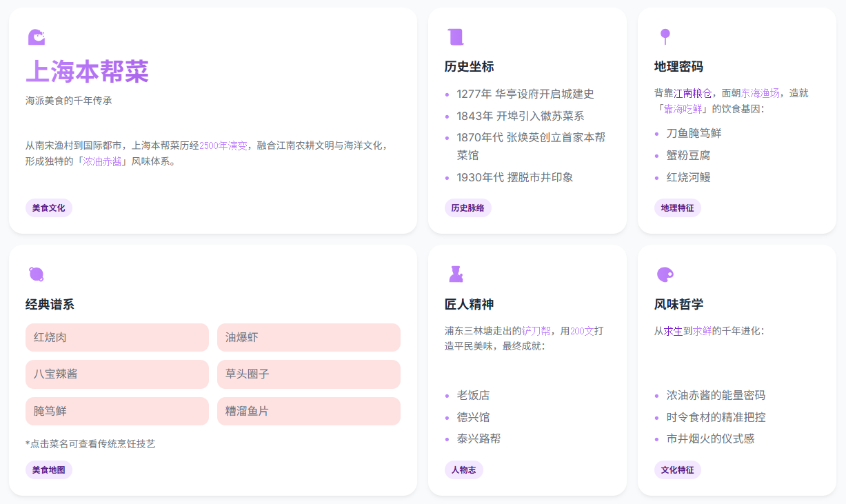 侬晓得伐?本帮菜里向藏着上海宁额千年江湖!从浦东铲刀帮额乡下灶头间,到十六铺德兴馆额八宝辣酱香,阿拉带侬听黄浦江水哺出来额咪道真经。红烧肉里向焖了交关移民故事,刀鱼馄饨皮子里包了四季道理,浓油赤酱当中看得见上海宁额生活算盘。老饭店传奇×本帮秘籍×味道考古,辣《上海话话上海》节目里,拿筷子当钥匙,开一桌海派文化密码宴!