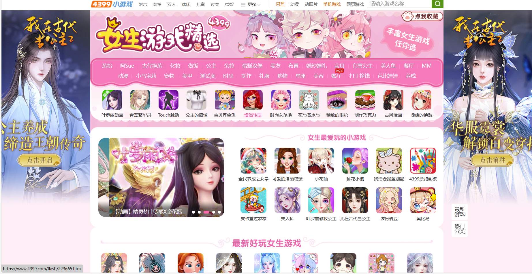【虽然制作粗糙,但是儿时最梦幻的回忆。后知后觉的发现,4399的女性分区仍在更新着,也算我们这代人接触女性游戏最早的平台了吧】