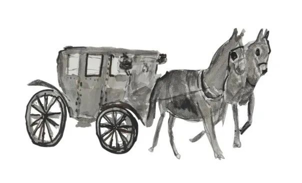 (奥尔罕手绘的努里医生和萨米总督巡岛时乘坐的马车)