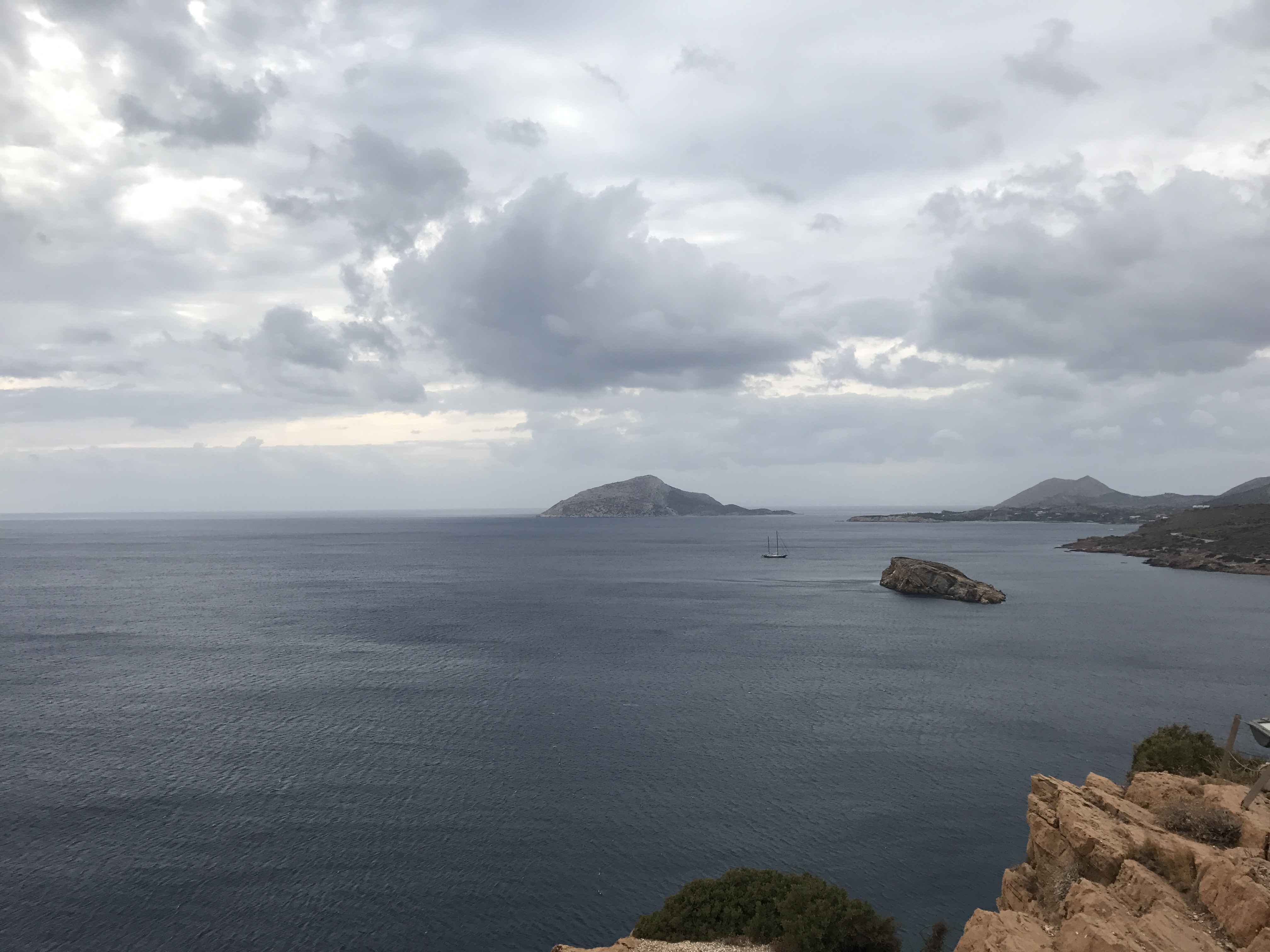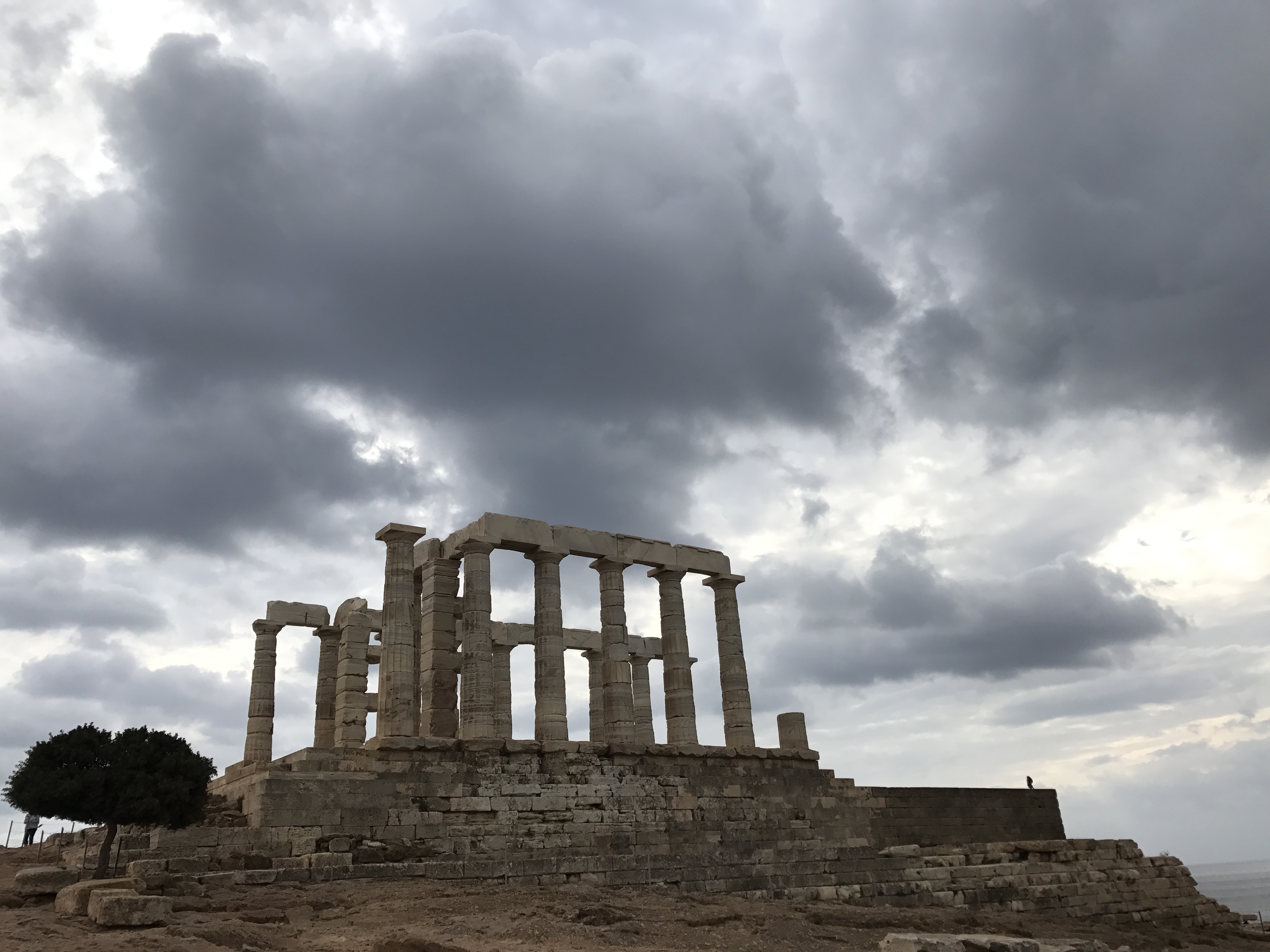 在海神庙的峭壁下,10月的地中海深邃蔚蓝