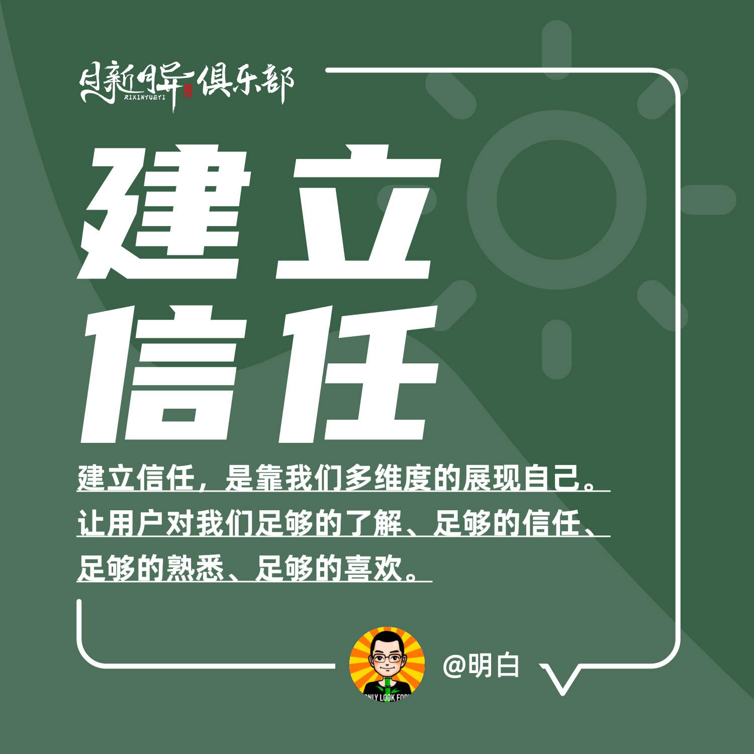 建立信任,是靠我们多维度的展现自己,让用户对我们足够的了解、足够的信任、足够的熟悉、足够的喜欢。