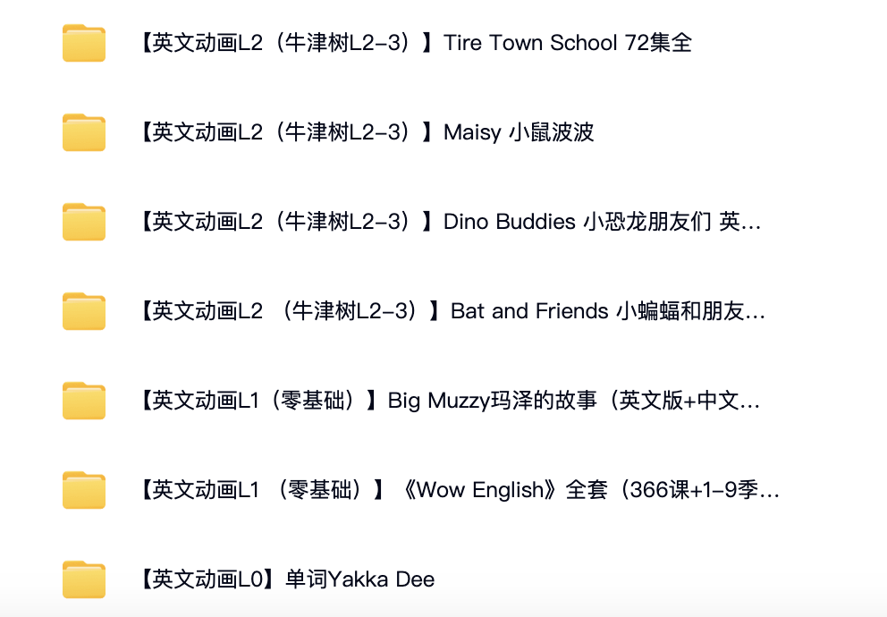《0-6岁英文启蒙动画分级资源》根据小朋友的听力能力精准匹配英文动画,才能做到有效磨耳朵。