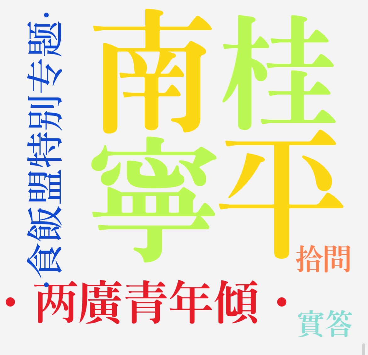 青年倾,十问实答,从南宁视角出发的两广青年对谈,食饭盟特别专题,本期为桂平寻旺乡南部白话[勾漏粤语]和南宁白话[邕浔粤语]的聊天节目,(详细文字稿将在节目播出不久补充。)