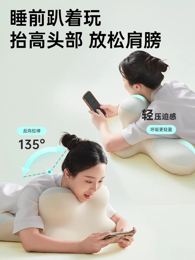 趴睡或者趴着玩手机:趴着时,下巴支撑区硬,让头不至于太低,压着胳膊和肩膀酸。