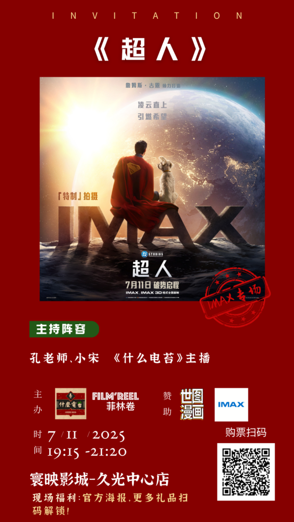 《超人》IMAX首映专场开始招募,7月11日晚19:15,什么电苔联合菲林卷在上海寰映影城久光中心店等大家一起来看《超人》,门票包含小食饮料,以及IMAX海报(限量,先到先得),以及世图漫画抽奖~赶紧扫码购买吧~