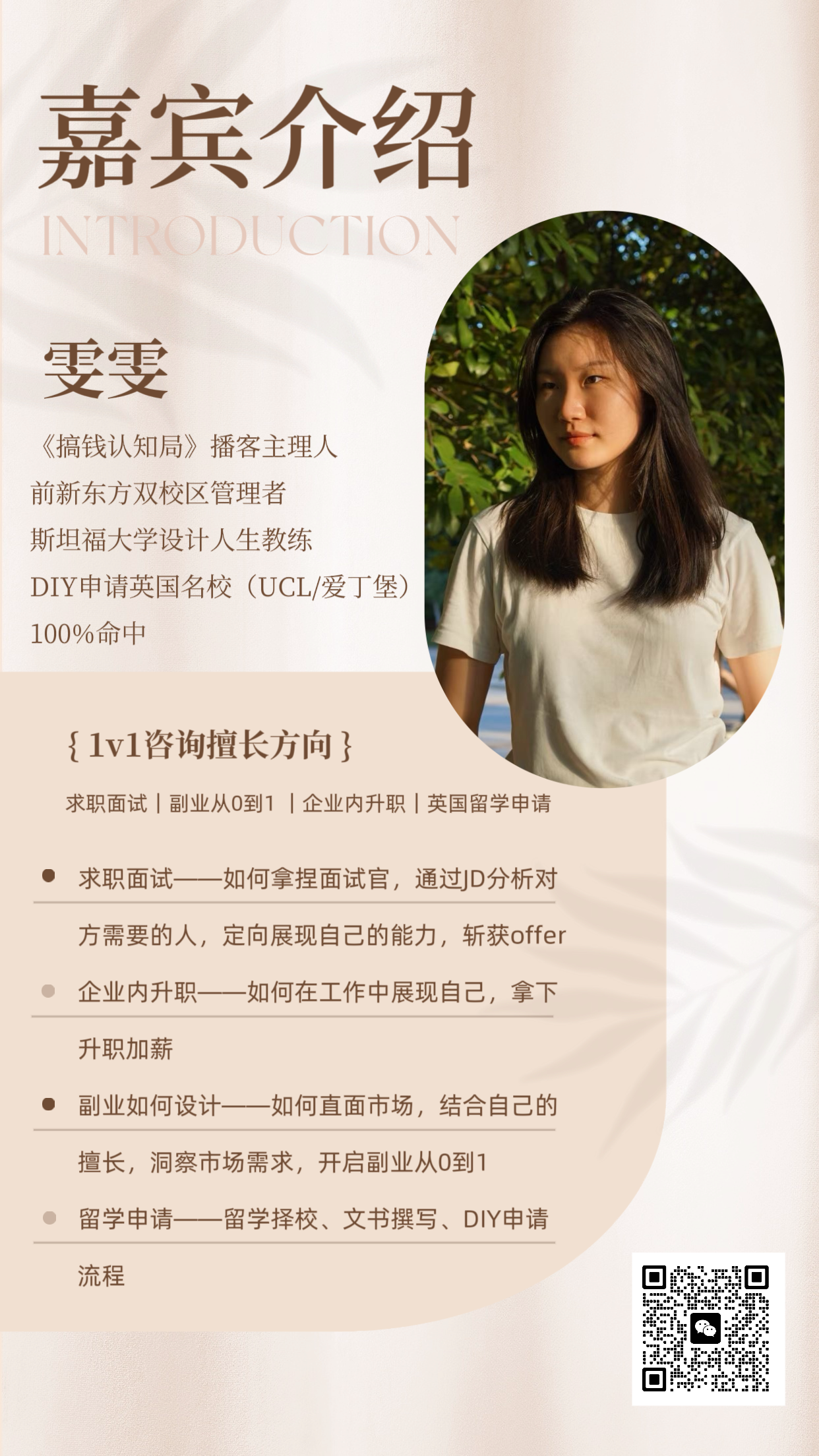 - 个人标签:《搞钱认知局》播客主理人、斯坦福大学设计人生教练