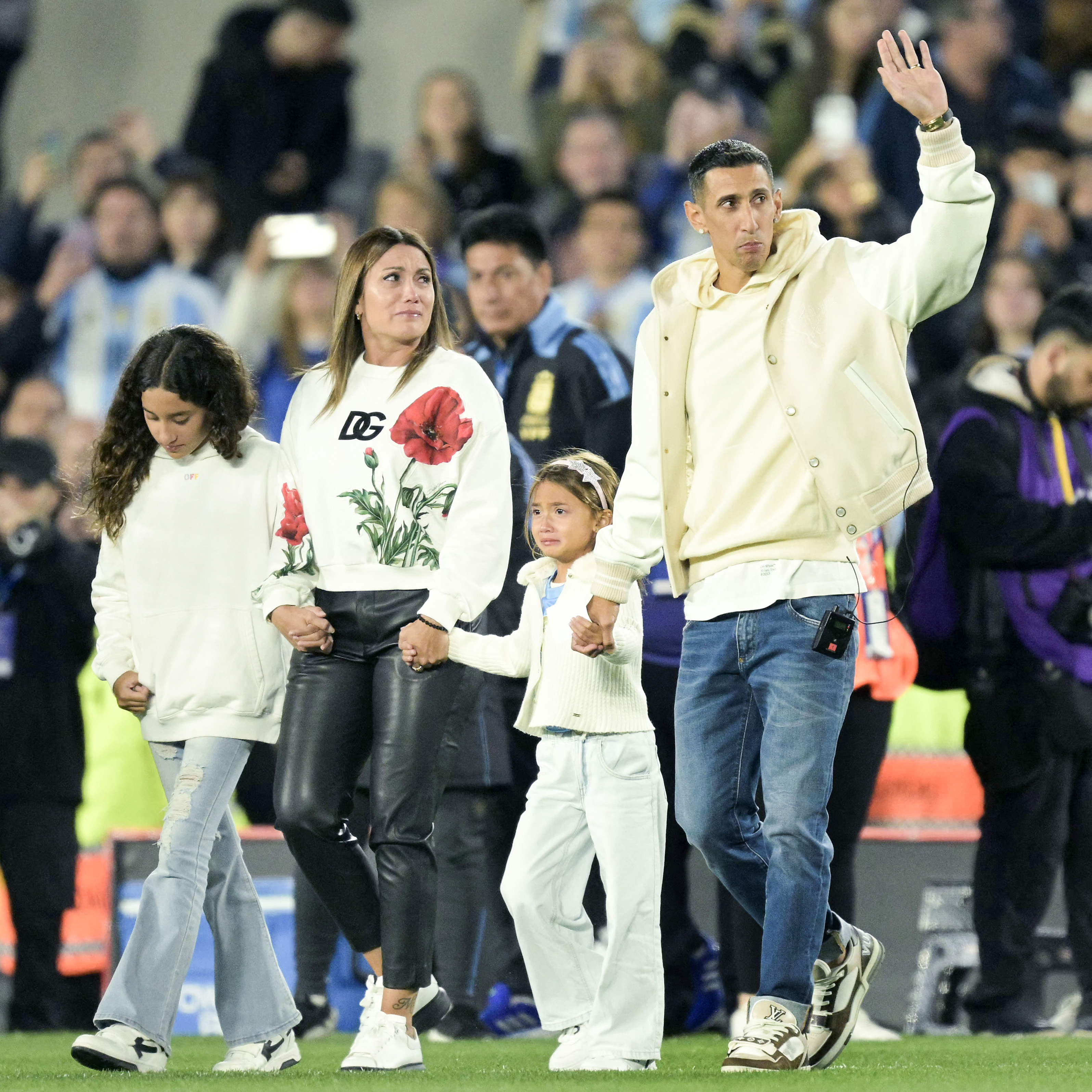 迪玛利亚一家来到纪念体育场