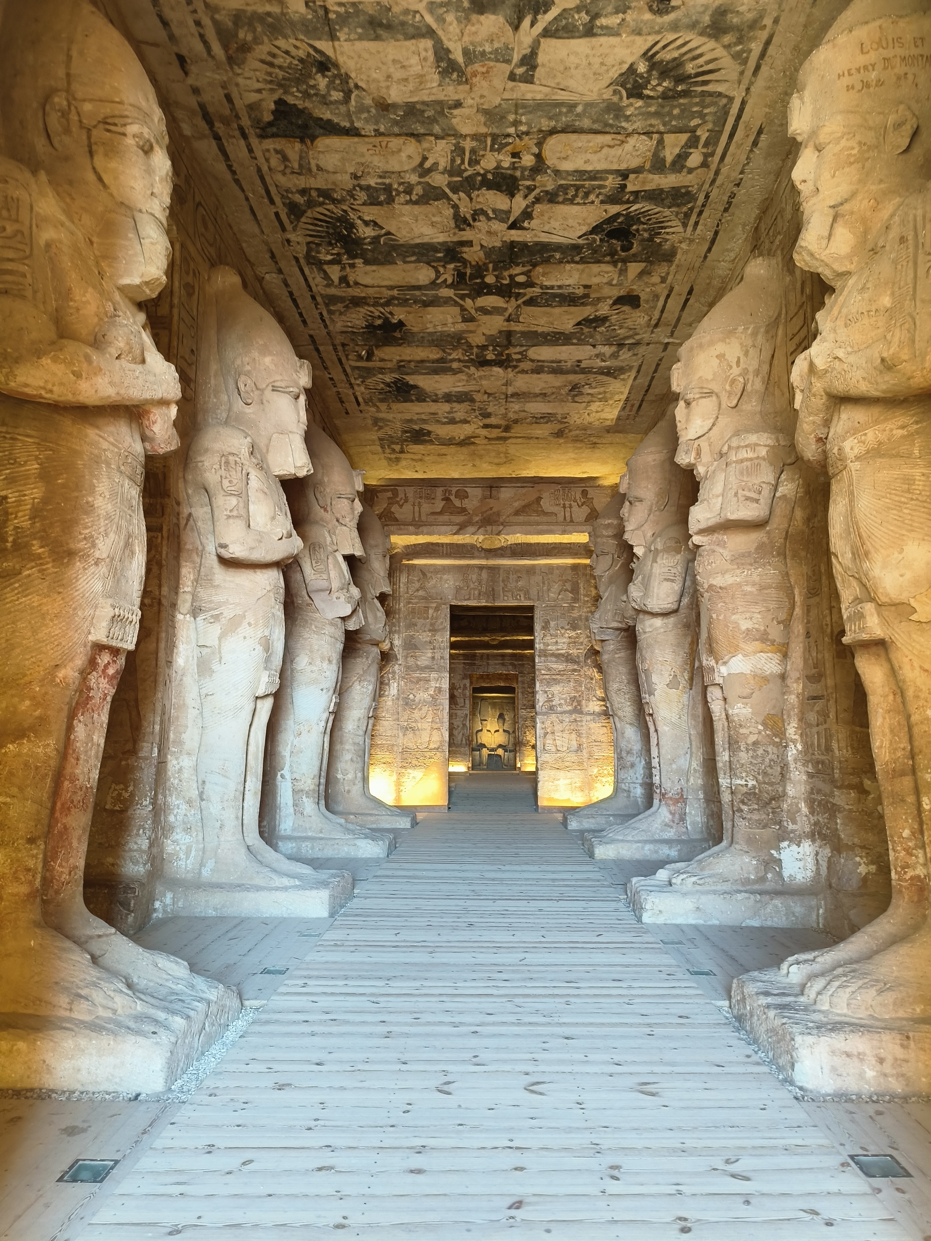 但那些猝不及防的瞬间——现代化酒店的玻璃门外,金字塔突然撞进视野的震撼;博物馆里拉美西斯二世的雕像被千年后的阳光再次点亮;凌晨从阿布辛贝归来时,退房的酒店经理主动提供房间让我们洗澡休息;街头小朋友扑进怀里的温度……还有不像迪拜泛滥成灾的廉价“Habibi”,在埃及,一句“Habibi”真真切切能够拉近人与人距离。