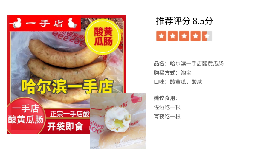 霄哥来推荐一款香肠,是来自东北大城市哈尔滨的知名熟食店,叫做酸黄瓜香肠,解腻又有饱腹感,很适合做喝酒的冷盘小吃