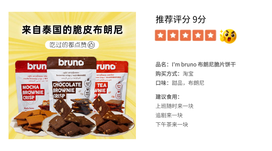 是一口经验的饼干,分享给同事吃了一口,立刻就下单了!酥脆的,但是又有完整的布朗尼蛋糕味道,霄哥连说了好几次好吃~