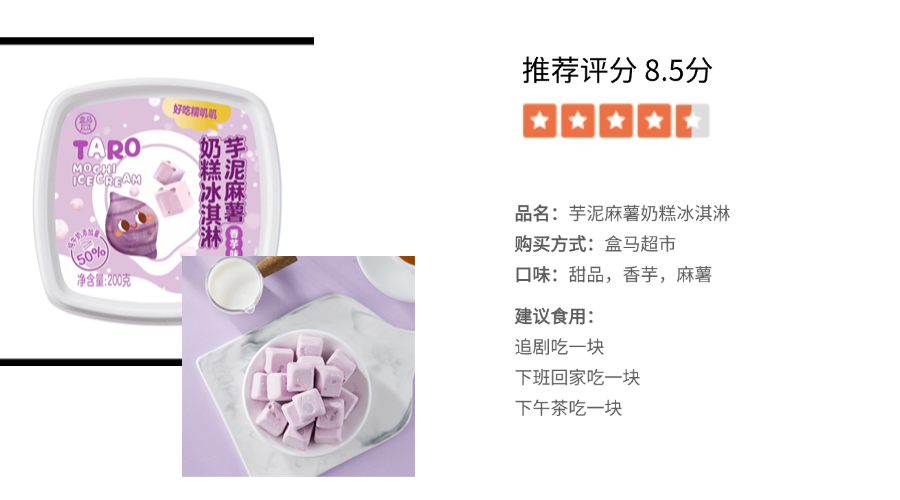 霄哥也要推荐一款盒某的冰淇淋,是芋泥口感的麻薯冰淇淋,小小一颗,老人小朋友都很喜欢吃,不断回购
