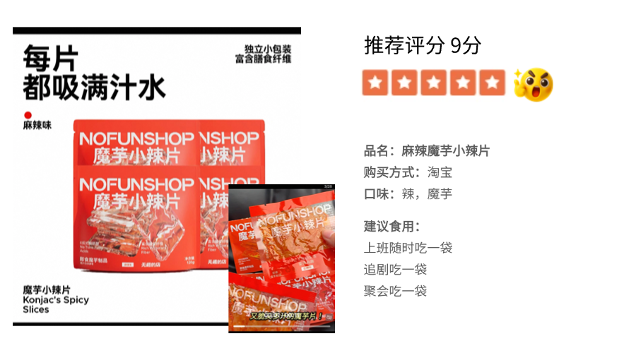 追剧零食第一名!必须推荐这个小辣片给大家,辣味柔顺,魔芋脆爽,独立小包包装,每一片都裹满汁水,喜欢吃辣的同学,健身又嘴馋的朋友,不容错过。
