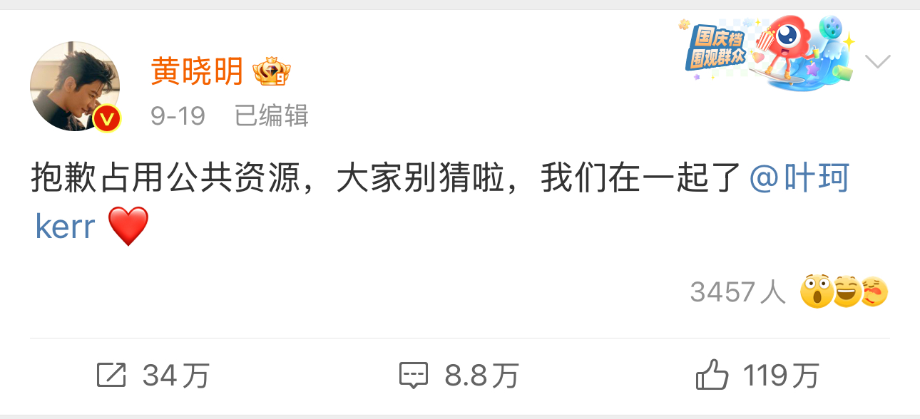 本期我们要聊一个热点话题,相信大家都看到了在本周四,黄晓明官宣了自己的新恋情。