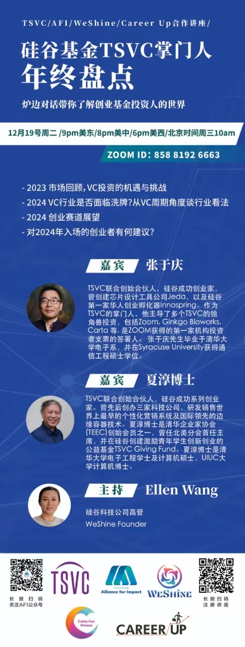 TSVC举办了《打造下一个独角兽》讲座第24讲。一年前2022的岁末,正值chatGPT火爆登场,TSVC预判了multi-agent多智能体的兴起,今年agent果然成为了AI新赛道。TSVC的portfolio怎么决定的?对于2024的新赛道有什么预测?对于新的创业者,有什么建议呢?大家一起来听听吧。