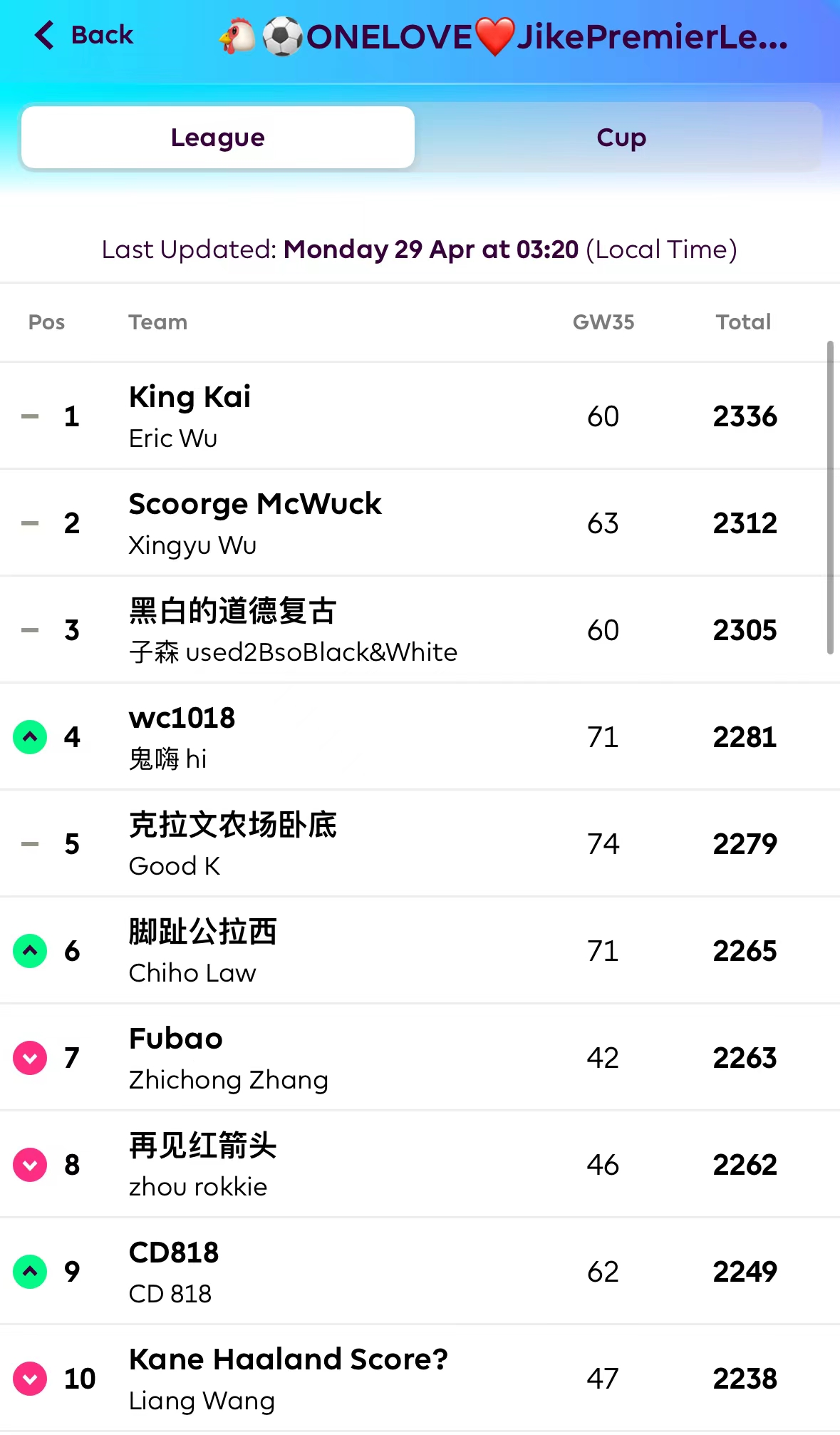 现在就登录英超官网fantasy.premierleague.com注册球队,挑选阵容,输入邀请码【y0dd32】加入 🐔⚽️ONELOVE❤️JikePremierLeague鸡超联赛