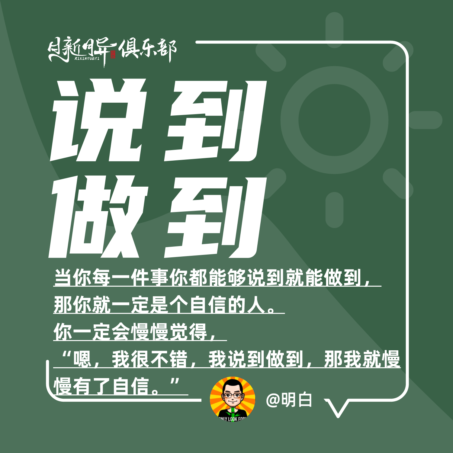 在这些细小的事情上,当你真的说到并且做到了,你也会产生这种自信的内在自驱力。