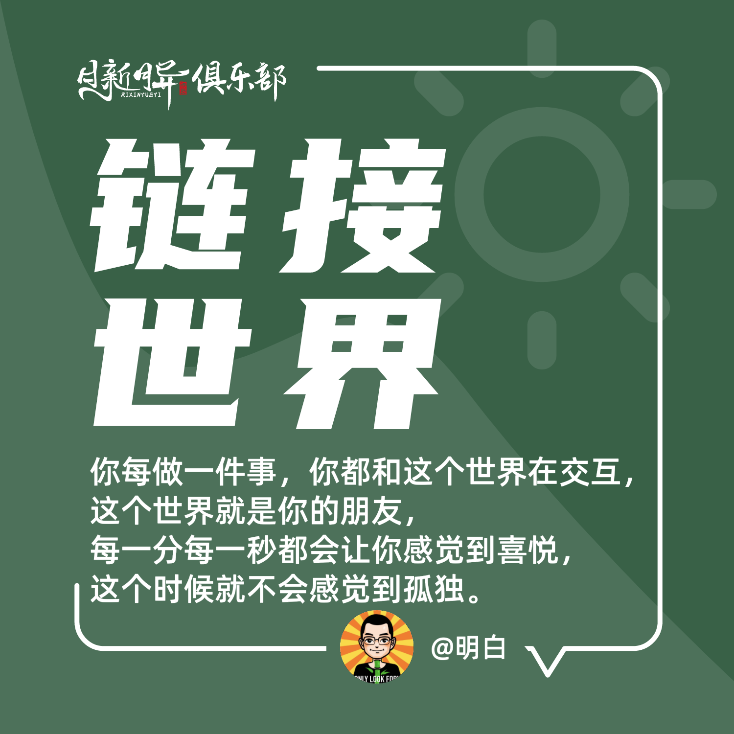 那就想办法给自己找一点快乐的事情,去读书、去思考、去线下见人、去网上聊天、还有日新月异俱乐部,每天看到大家在群里打卡,怎么会孤独呢?