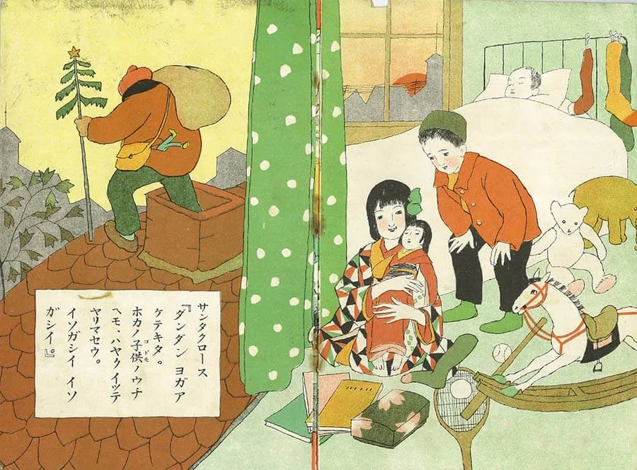 1900年明治屋进军银座的时候,开始圣诞销售战。到了大正时代,面向儿童和少女的各种杂志其12月刊上,封面和内容都大量使用和圣诞有关的故事和插画。1925年,日本首次发行了圣诞邮票(消灭结核病的慈善邮票),1928年的朝日新闻上写道,“圣诞节已成为日本的惯例节日,圣诞老人也堂而皇之的成为日本小孩的朋友”,当时已普及到如此地步。