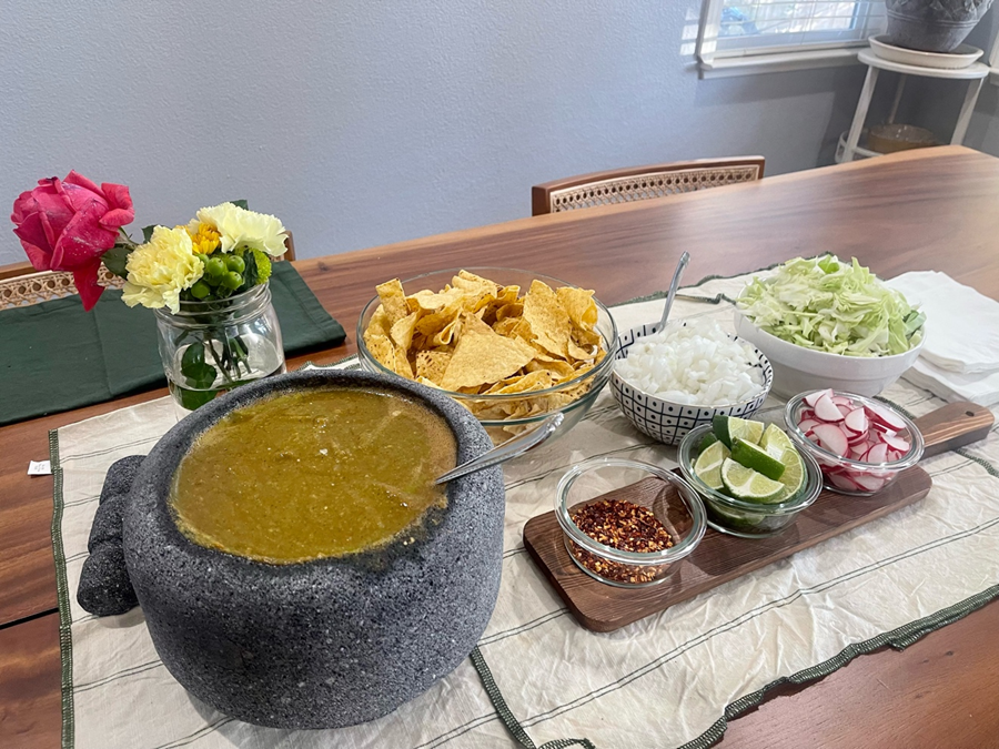 朋友家的圣诞节晚餐,pozole配tortilla chips
