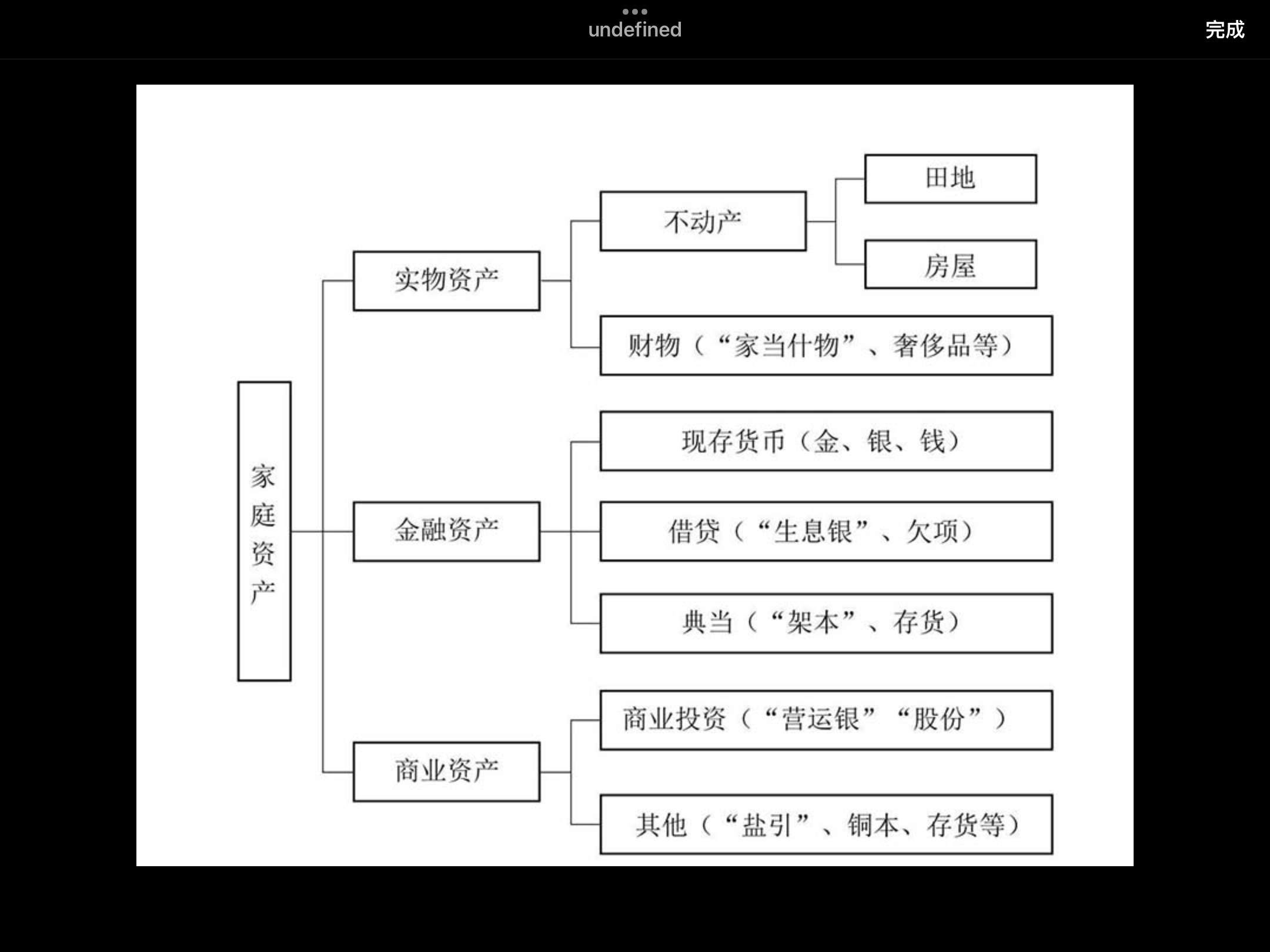 资产是指“拥有经济价值的任何东西,金、银、钱,即“现金”财产,由于彼此有一定的换算比率,也相对容易处理;家庭资产结构或家庭投资理财结构是社会金融发展程度和现代化程度的一面镜子。那我们是否可以从家庭资产结构的角度探讨中国历史的变迁过程,或者,认识某一特定历史时期的经济特征和性质。比如宋代是最早发行纸币的朝代,宋朝也有便于异地结算的“飞钱”“会票”制度”