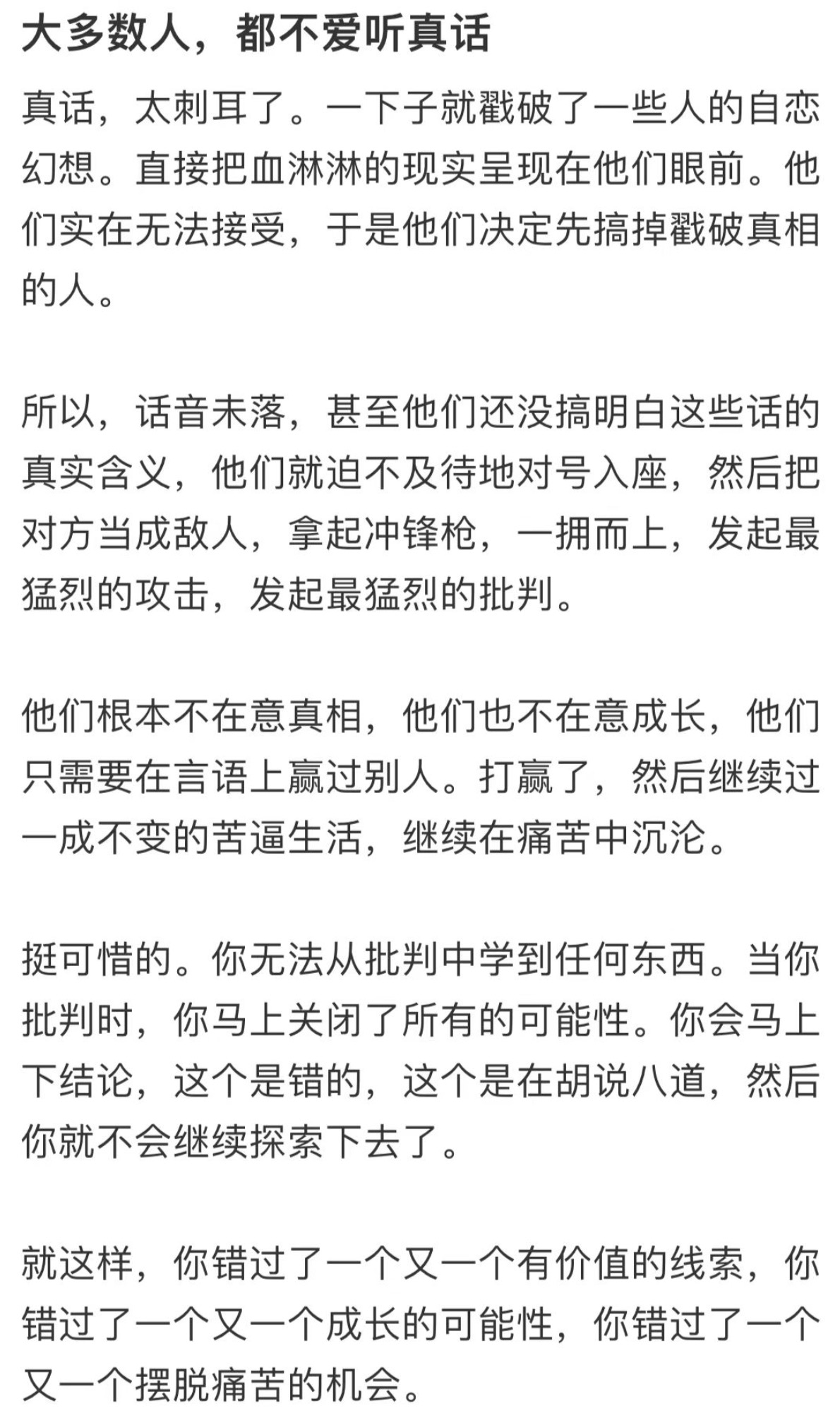 人性底层中,大多数人不愿听真话,他们沉浸在言语的胜利中,却忽视了成长的机会。在这样的环境下,我们该如何抉择?如何在复杂的人际关系中坚守自我,实现成长。