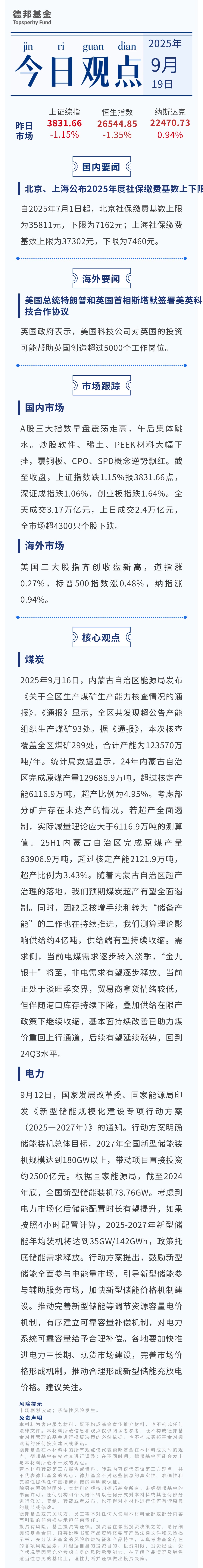 9月19日财经速递,带您最快跟踪板块表现和市场速递!