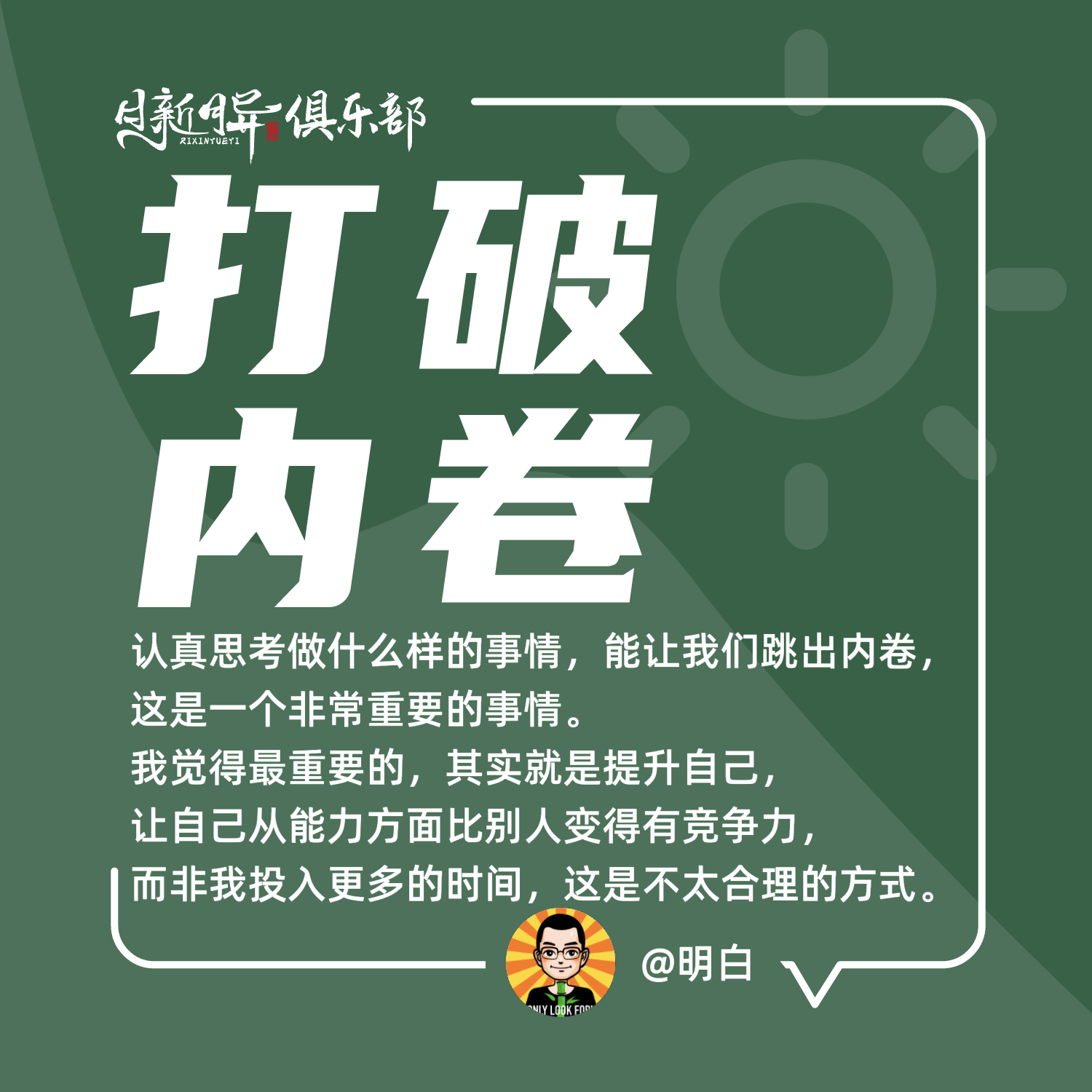 所以如果他能够在能力上提升自己,那他就不用去内卷,反而他可以花上更少的时间去获得更大的业绩。