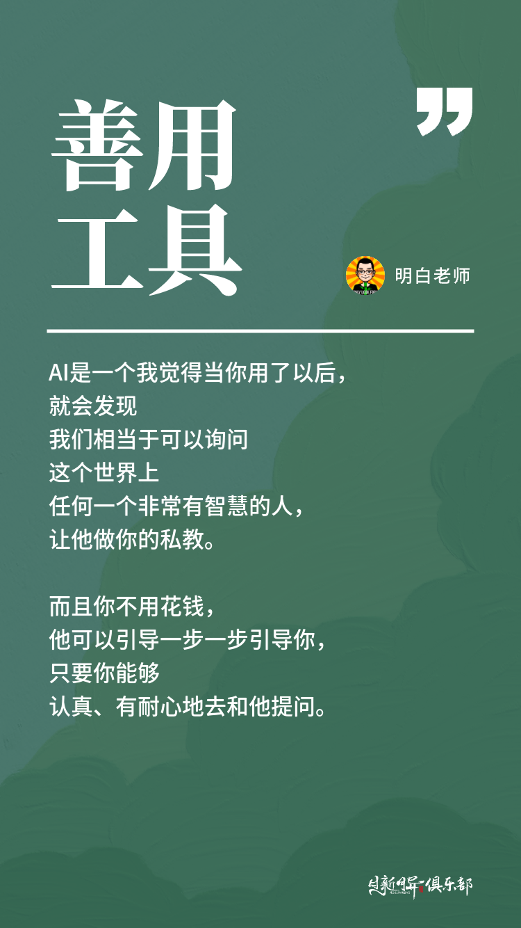 这是一个我觉得当你用了以后,就会发现我们相当于可以询问这个世界上任何一个非常有智慧的人,让他做你的私教。而且你不用花钱,他可以引导一步一步引导你,只要你能够认真去和他提问,有耐心。