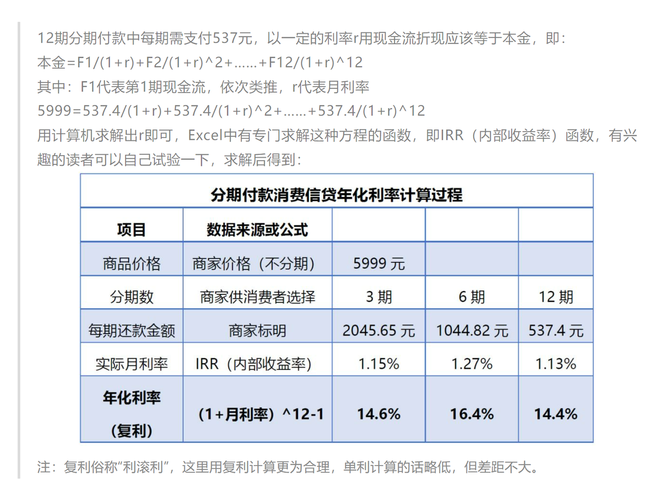 播客中提到的IRR公式和各大借款平台显示的年化利率图片: