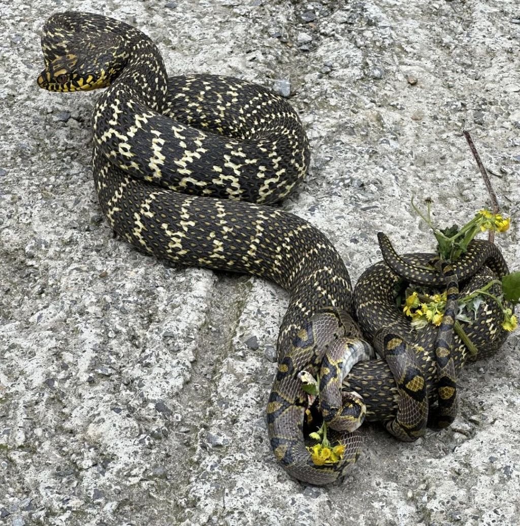 一条王锦蛇正在捕食玉斑锦蛇。王锦蛇和玉斑锦蛇都属于无毒蛇。摄影:胡刚