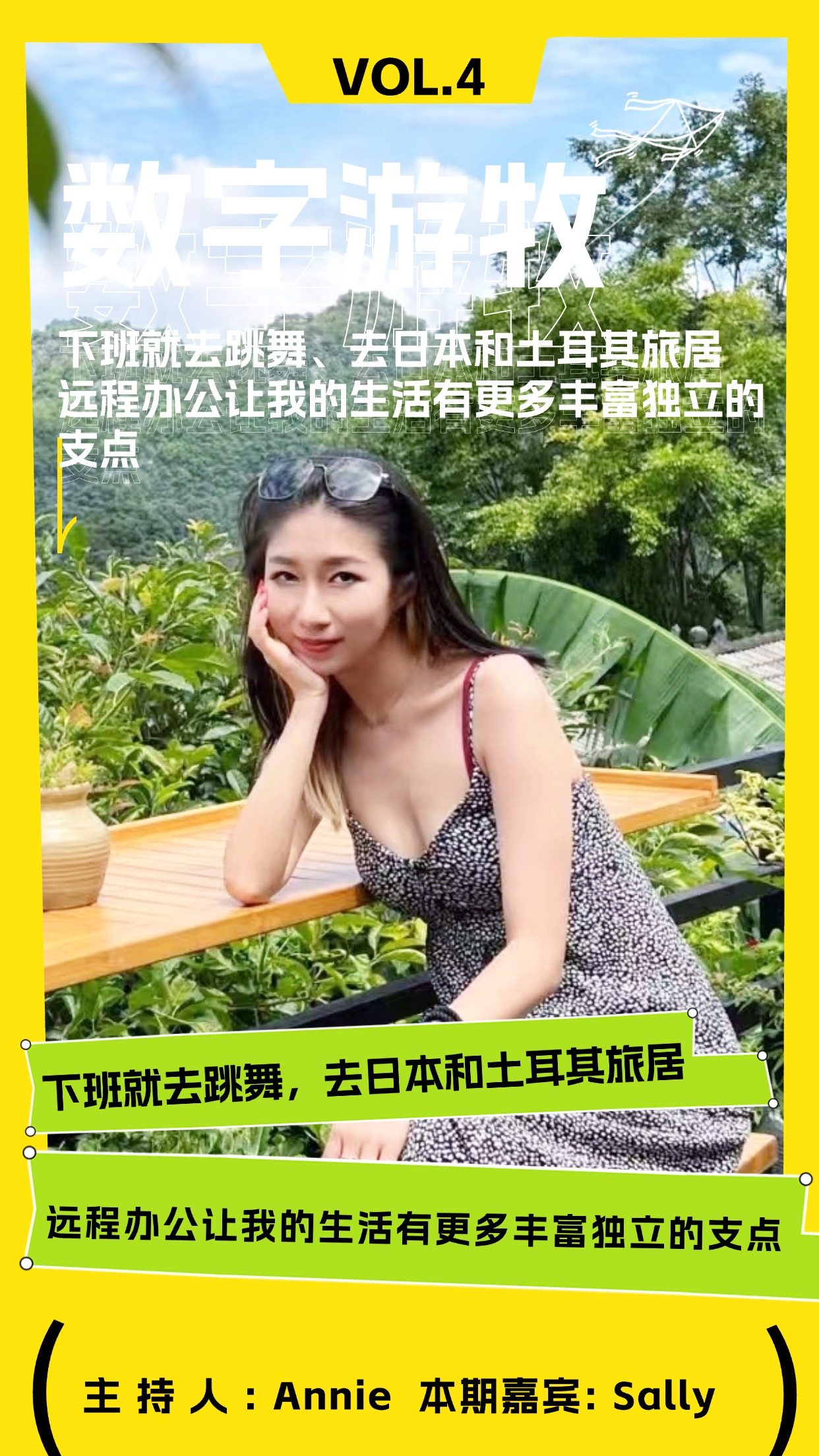 数字游牧这档节目是和你分享数字游民的远程生活方式,以及解锁多元的职业探索道路。人生一定不是轨道,但如何成为旷野,这档播客也许会告诉你答案。欢迎大家在「小宇宙」、「Apple苹果播客」、「喜马拉雅」订阅收听播客《数字游牧》。