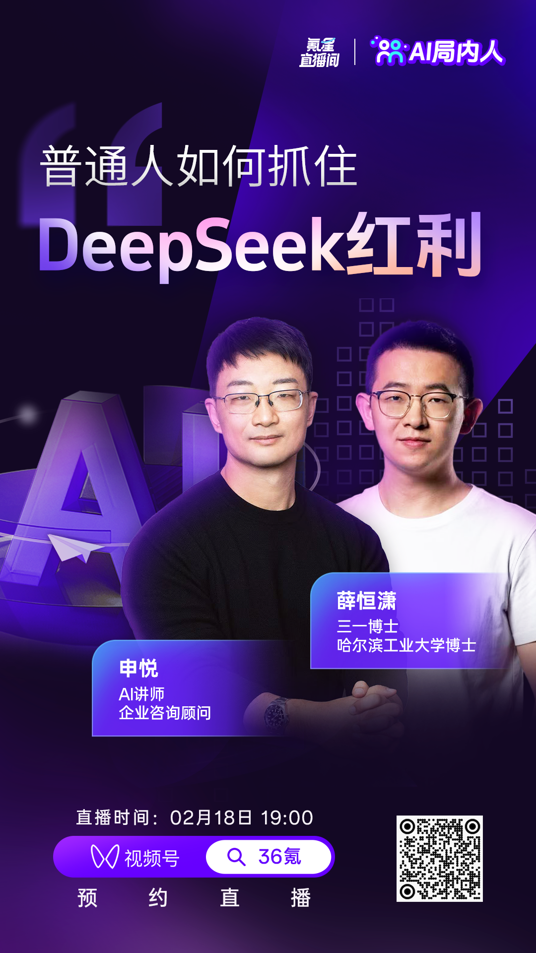 🎤带着这些问题,36氪《CEO锦囊》直播间AI局内人专场邀请到了著名科普博主三一博士薛恒潇,AI讲师&企业咨询顾问申悦,和我们一起聊聊在AI时代,普通人从焦虑者到造浪者的进化之路🛣️。