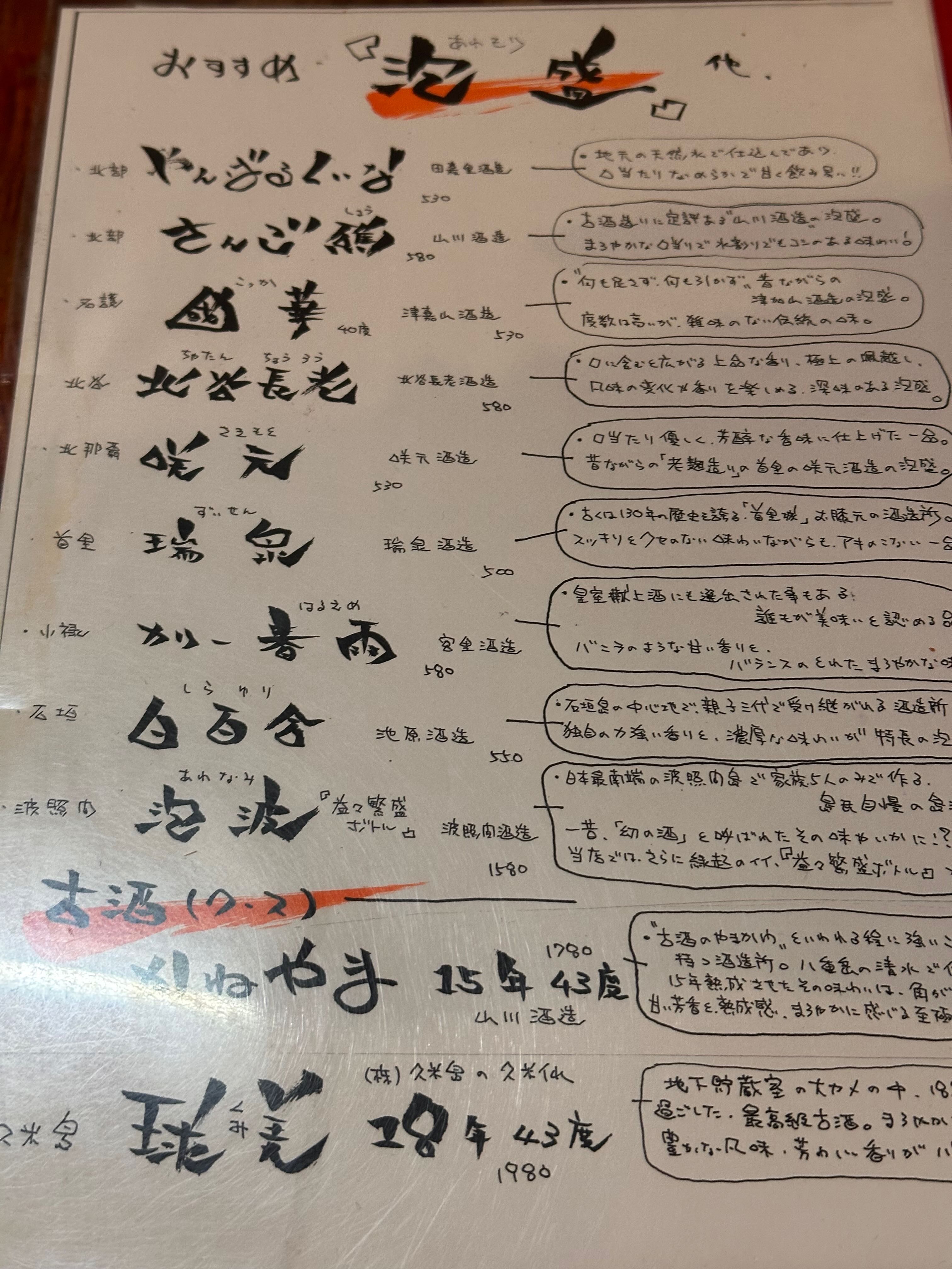 晚上去了一家本地大众酒场 - 金太郎,酒单上是没有清酒的,这让我非常不习惯。我基本上去日本旅游的时候,晚上吃饭都会点清酒。冲绳的酒单上只有泡盛 ---- 泡盛是一种蒸馏酒,酒精度数大概在 30-42 度之间,根据年份的不同分为新酒、古酒。味道大致接近于味道比较清淡的白酒,或者是伏特加的味道。