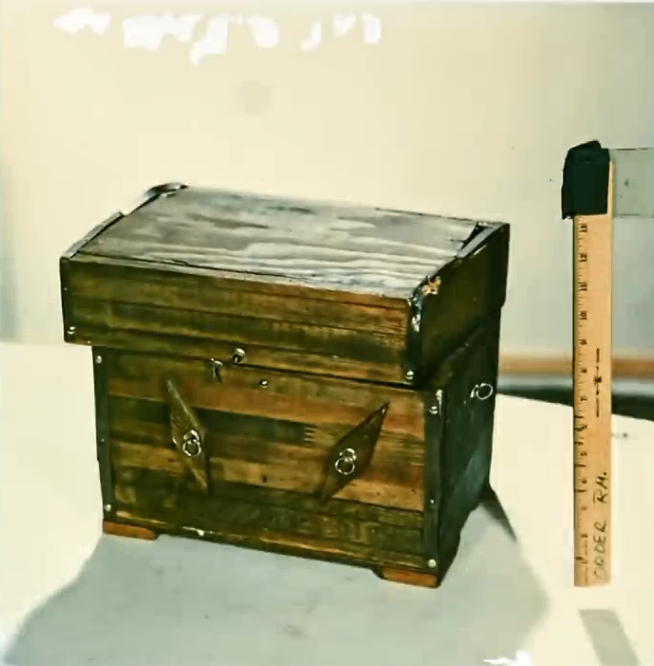 - 装有被害人埃克西·威尔逊头颅的木箱及发现地