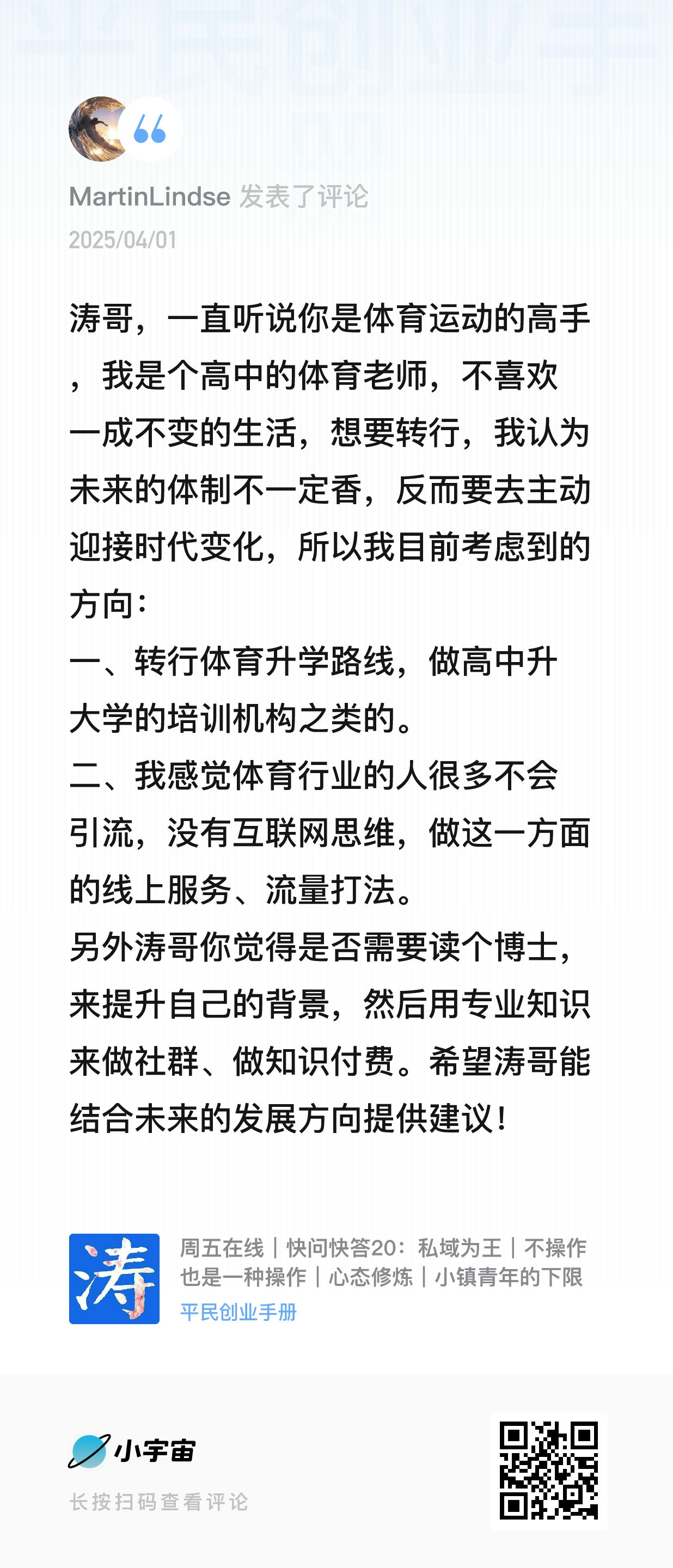 - 19:34 Q7:体育老师如何转型?