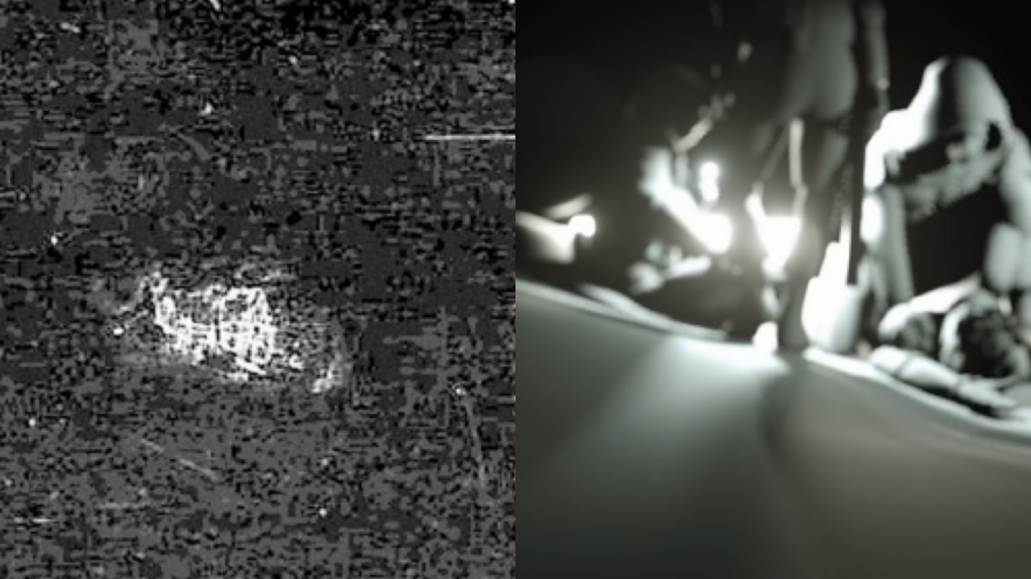 萨罗塔列夫相机中诡异照片(左);根据照片模拟的情形图(右)