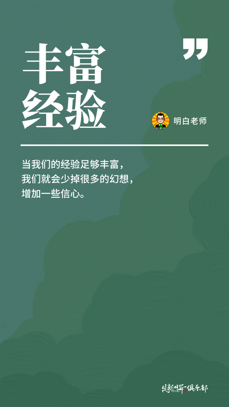 这就是当我们的经验足够丰富,我们就会少掉很多的幻想,然后增加一些信心。